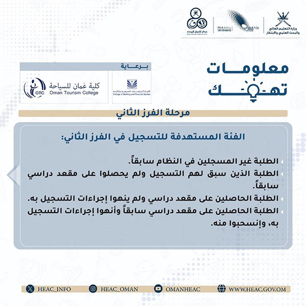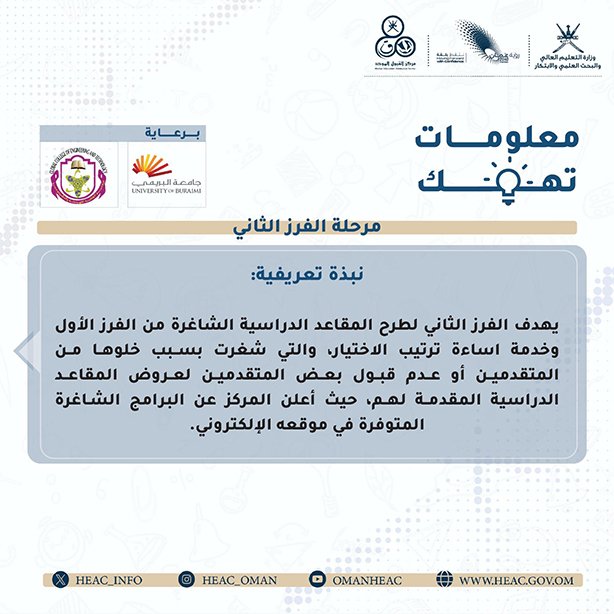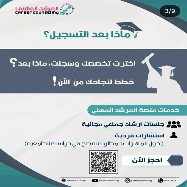 | جلسات ارشاد جماعية حول نظام القبول الموحد | 2024-04-01 - 2024-06-01 | العربية | 0.00 |