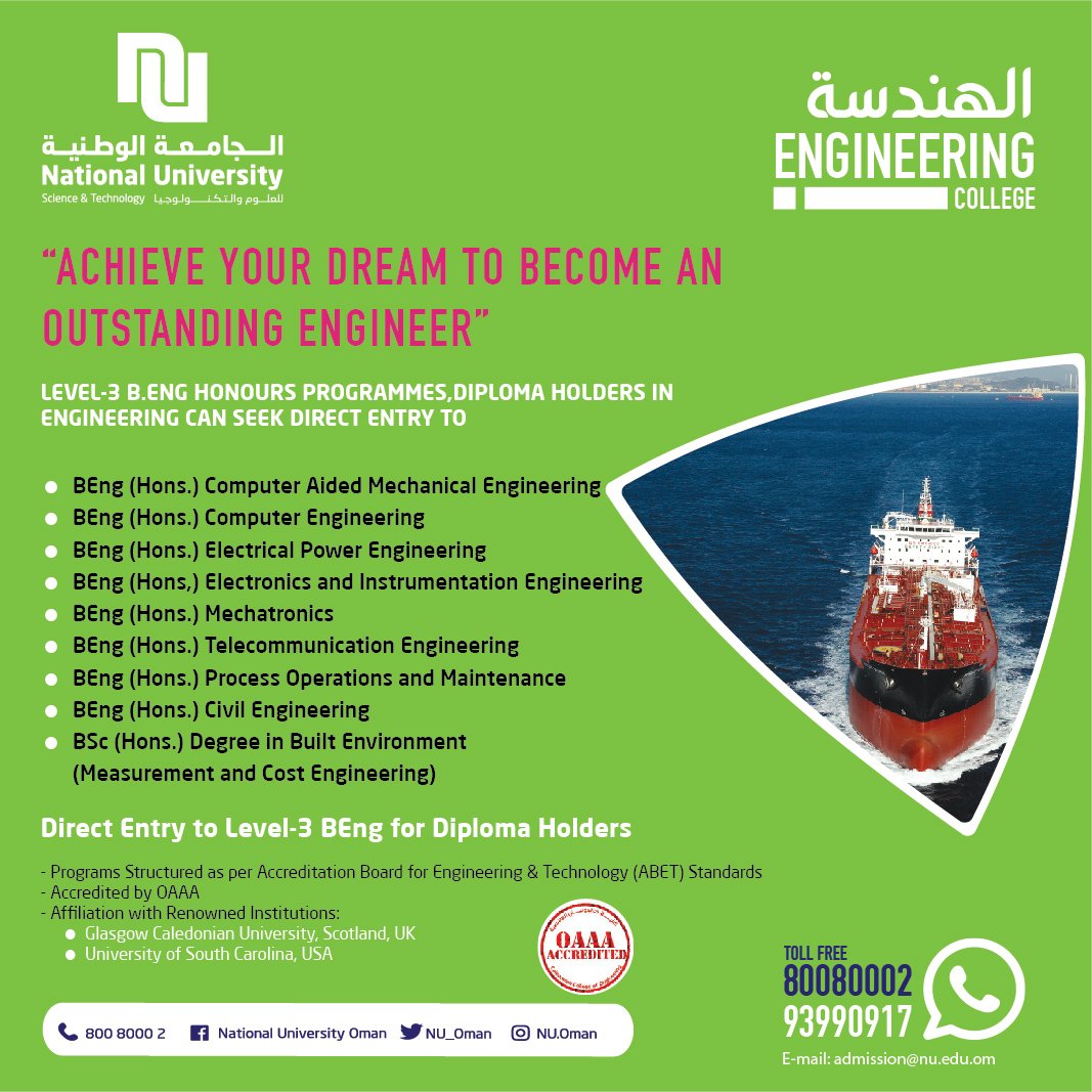 | الهندسة في عمليات المعالجة والصيانة | 4 | الانجليزية | 3960.00 | في حال ان طالب حاصل على شهادة الايلتس 5 او أكثر يعفى من اختبار اللغه الانجليزية و يتوجب عليه الجلوس لاختبار مادتي الرياضيات و تقنيه المعلومات.