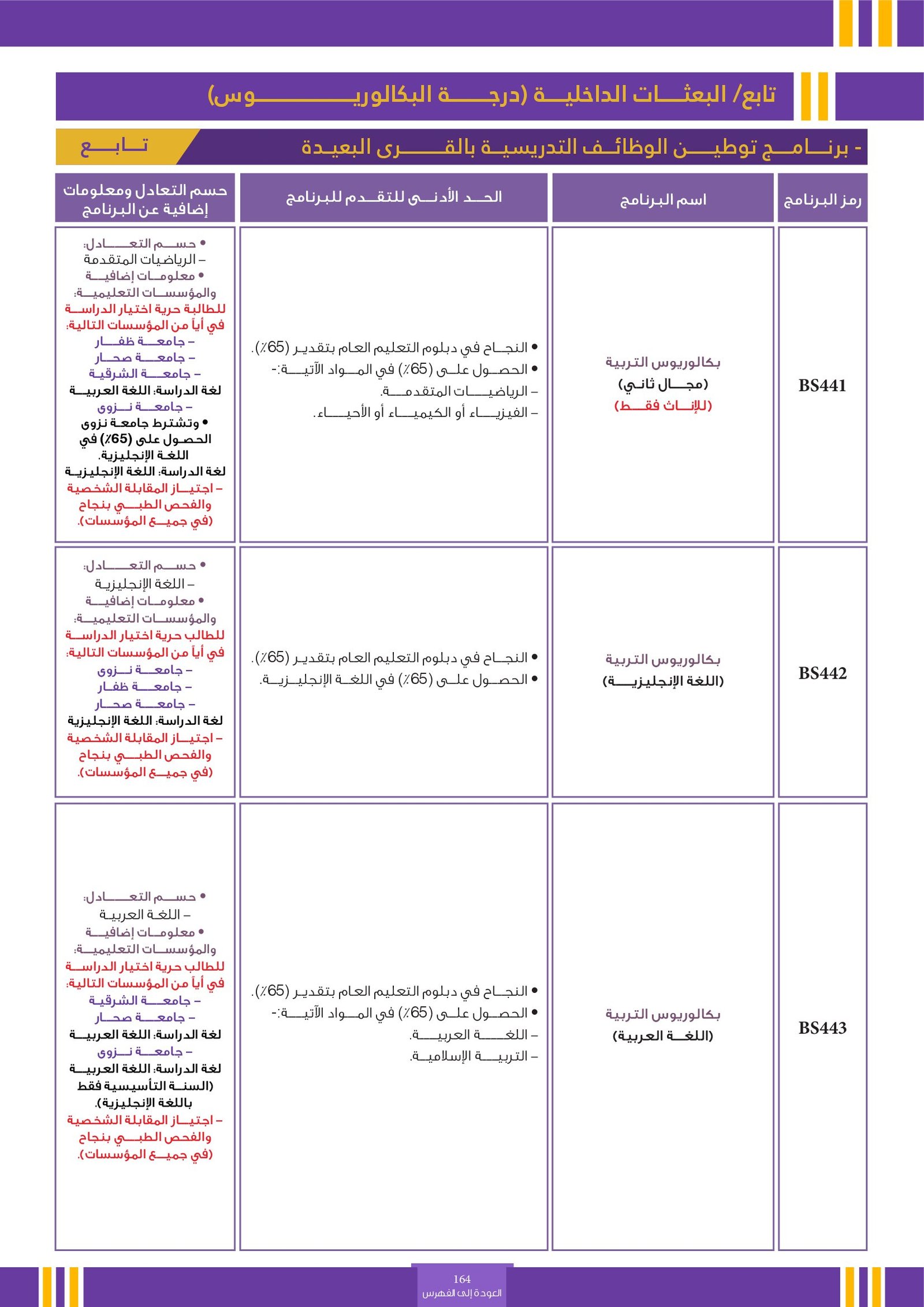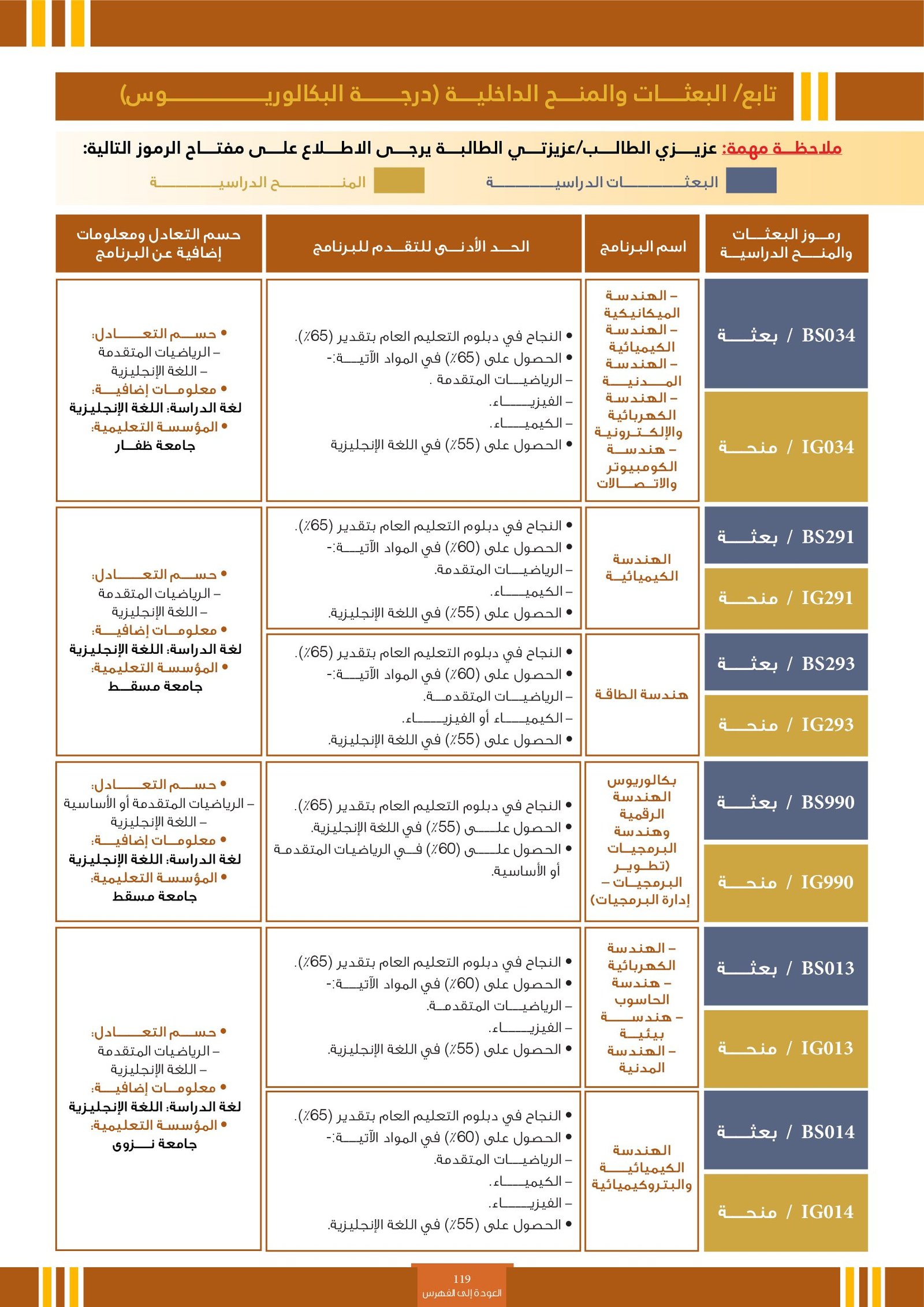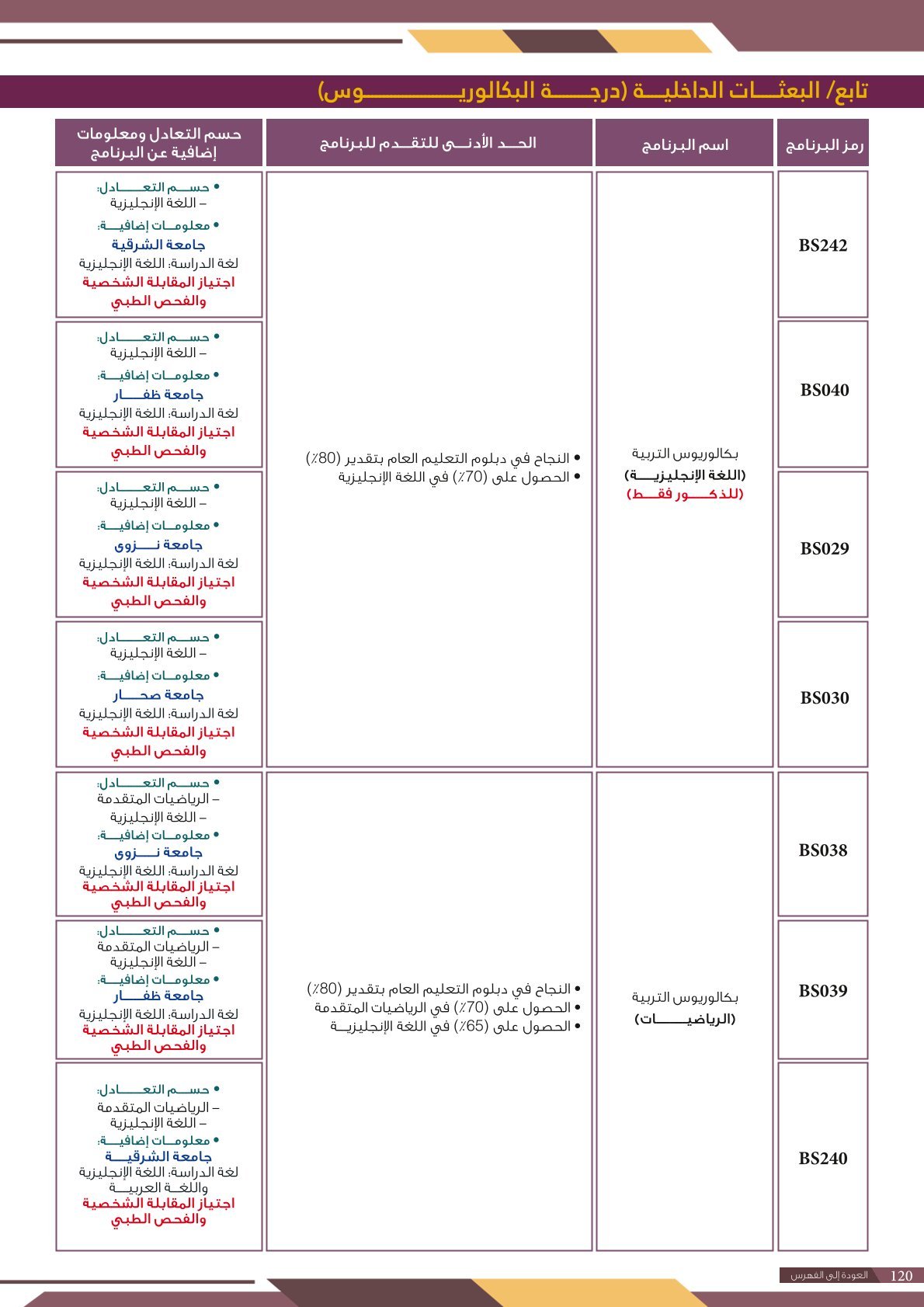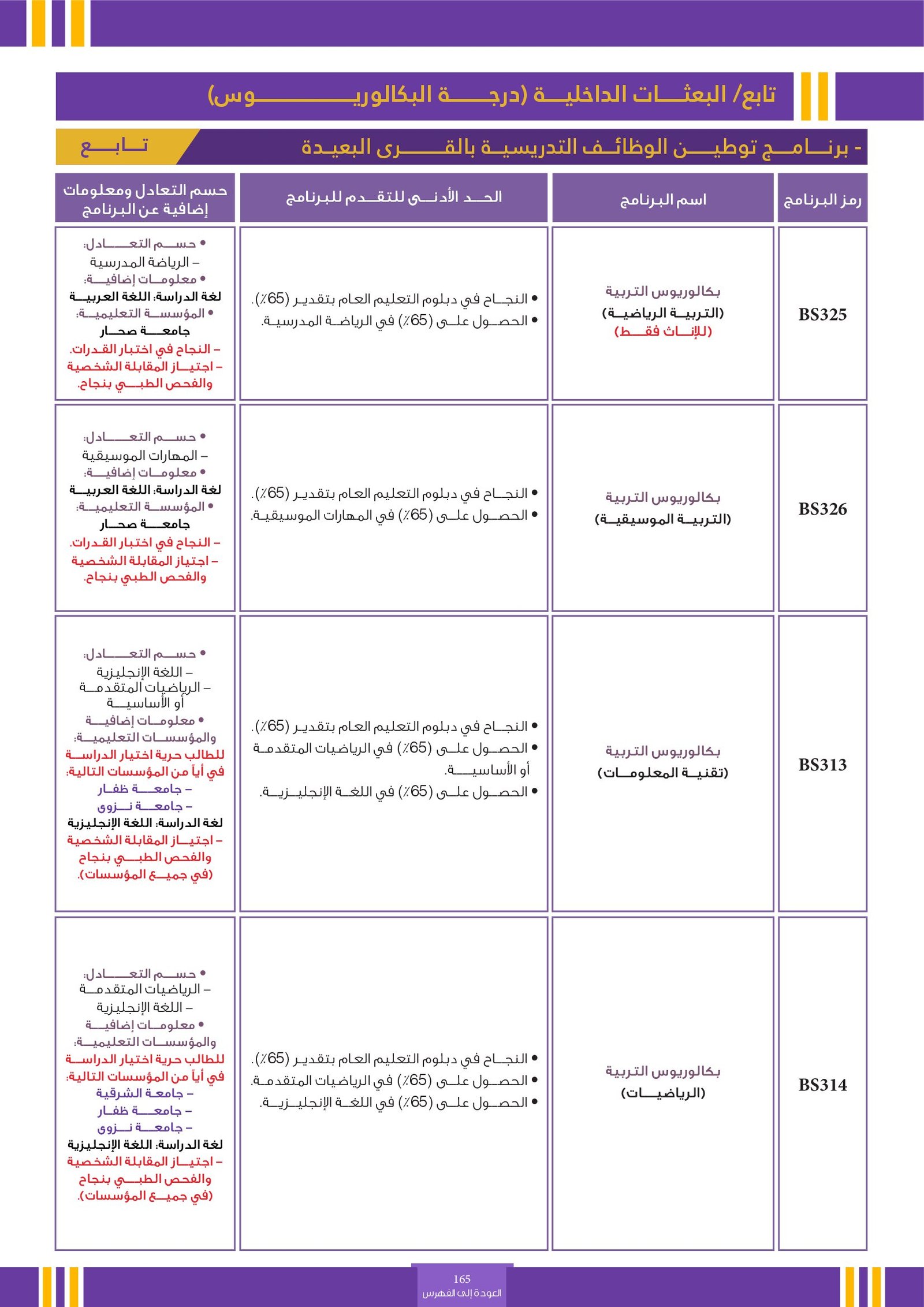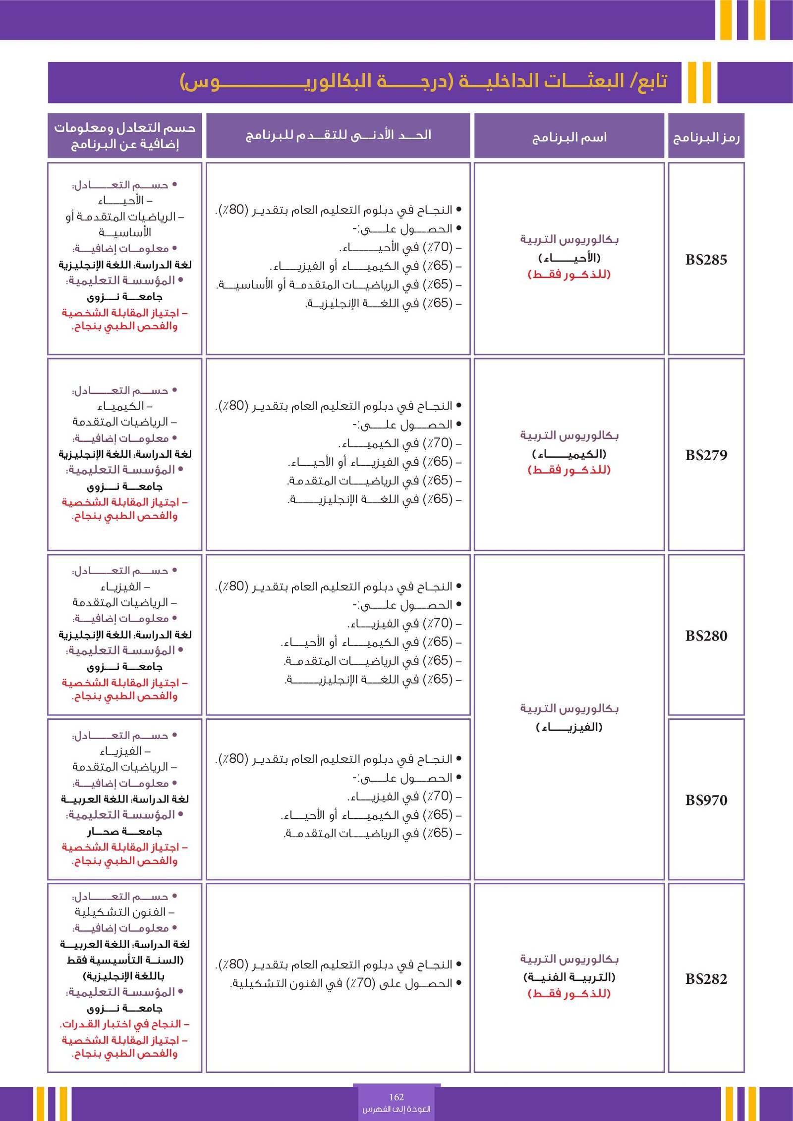 | BS970 | بكالوريوس التربية (الفيزياء) | البعثات الداخلية | أخرى | التفاصيل بالمرجع | اجتياز المقابلة الشخصية