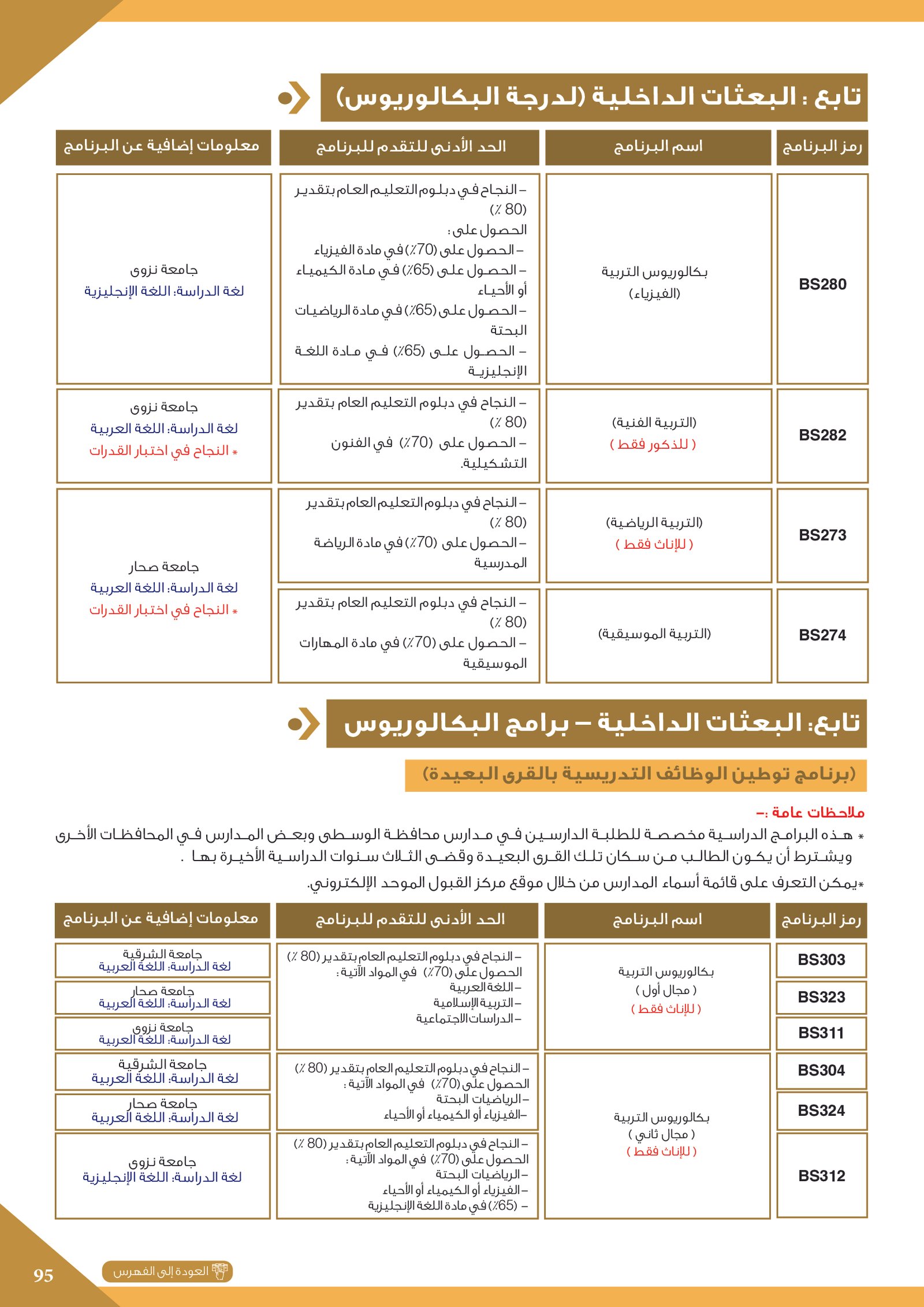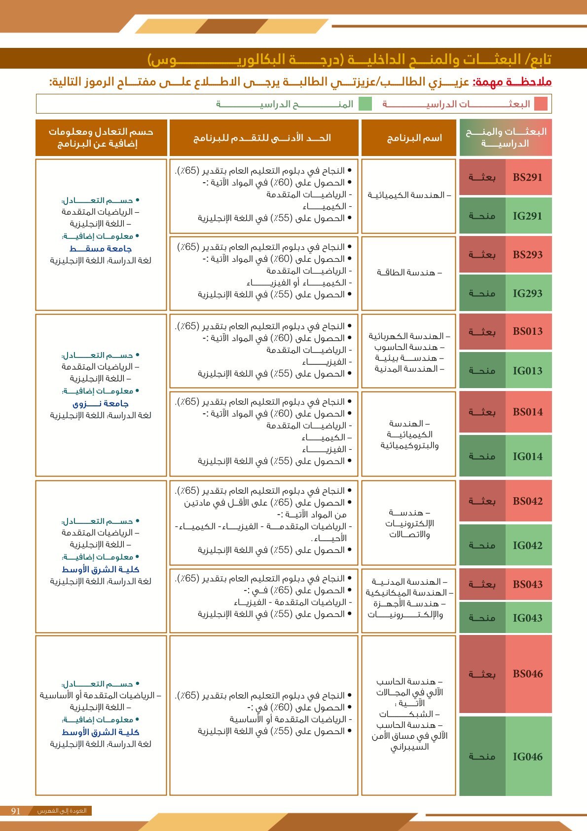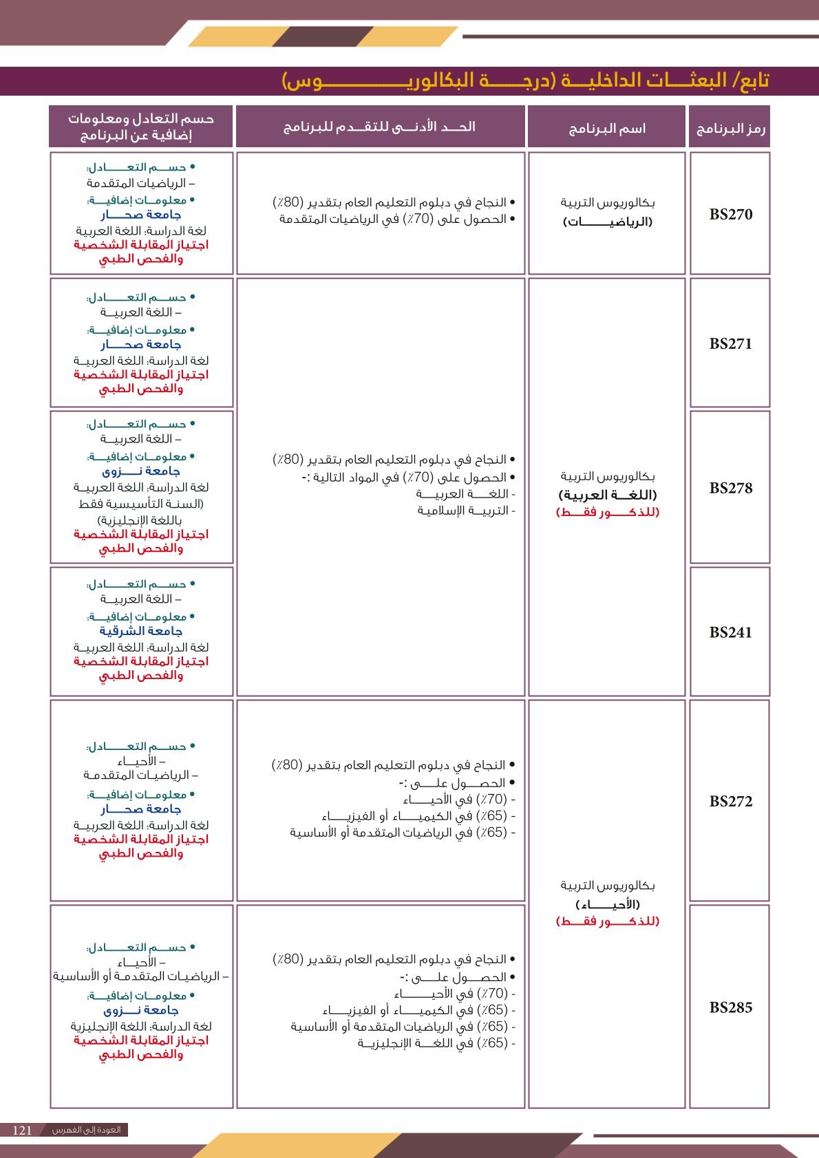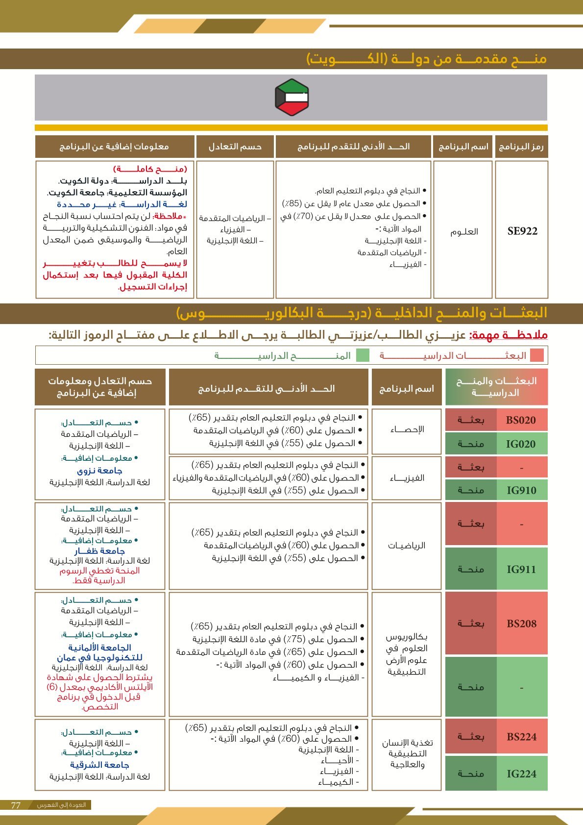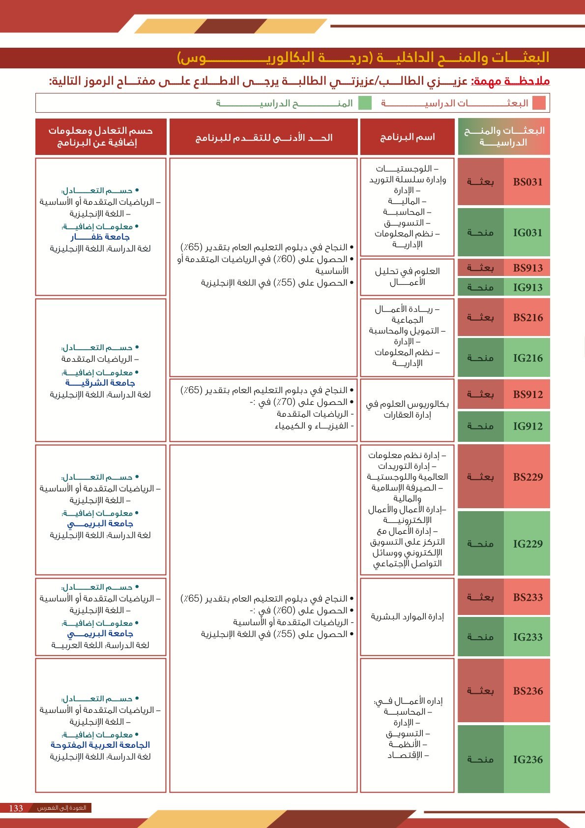 | BS970 | بكالوريوس التربية (الفيزياء) | البعثات الداخلية | أخرى | التفاصيل بالمرجع | اجتياز المقابلة الشخصية