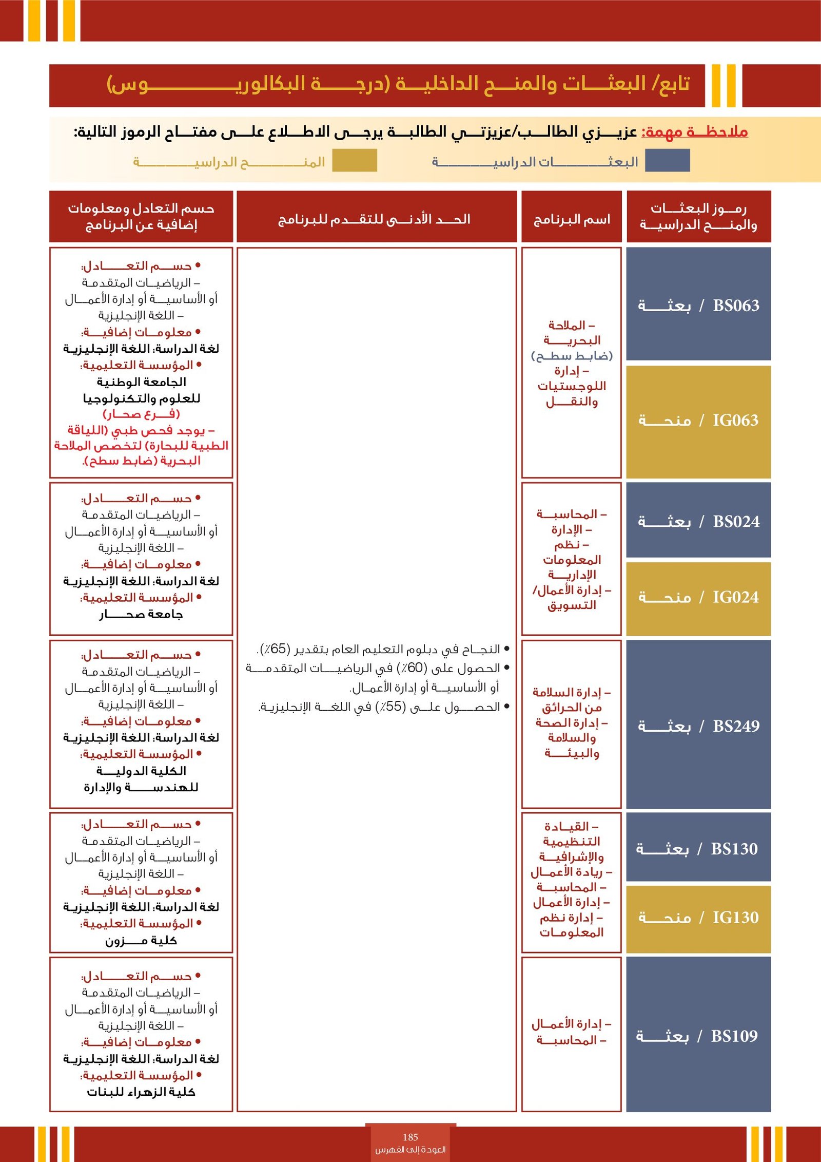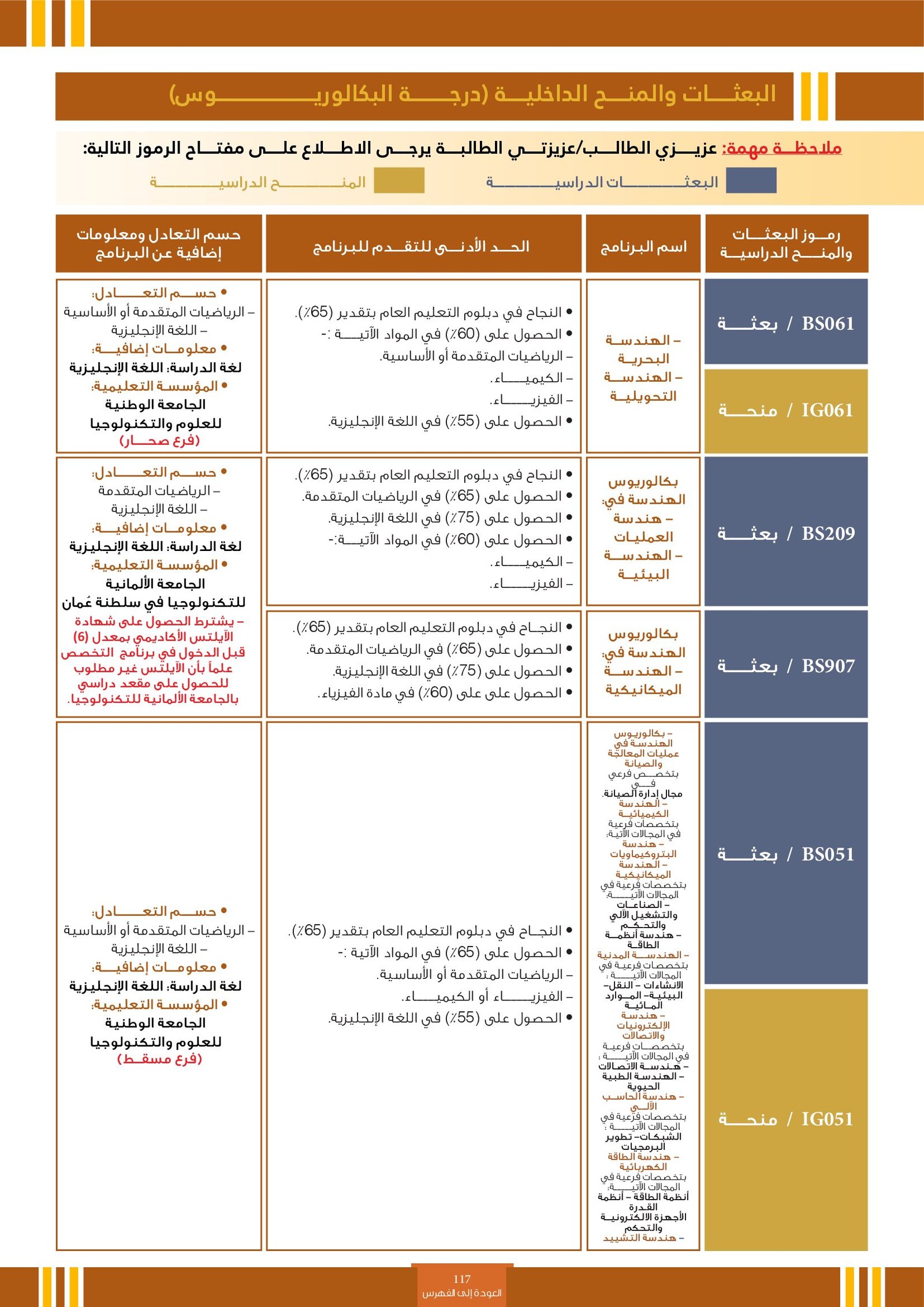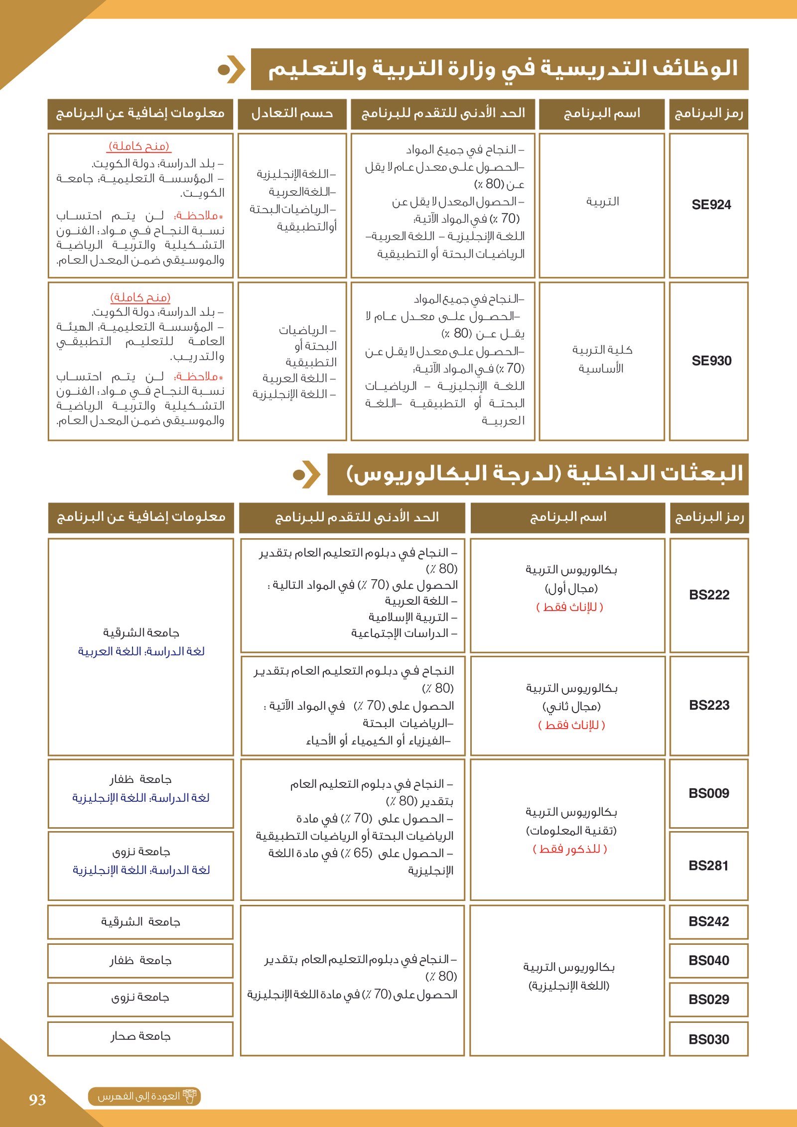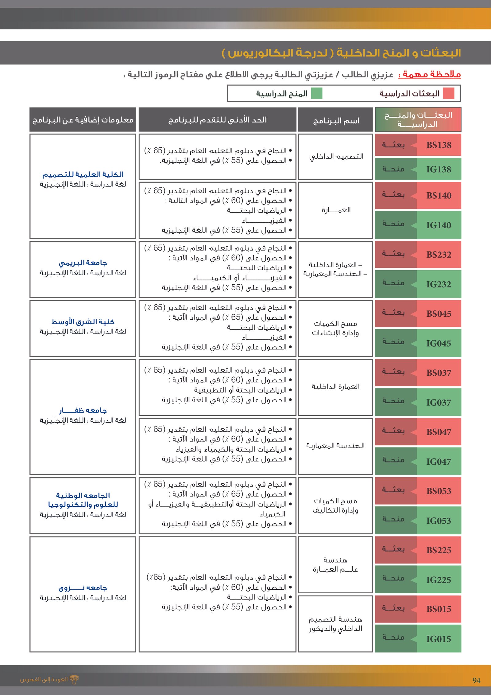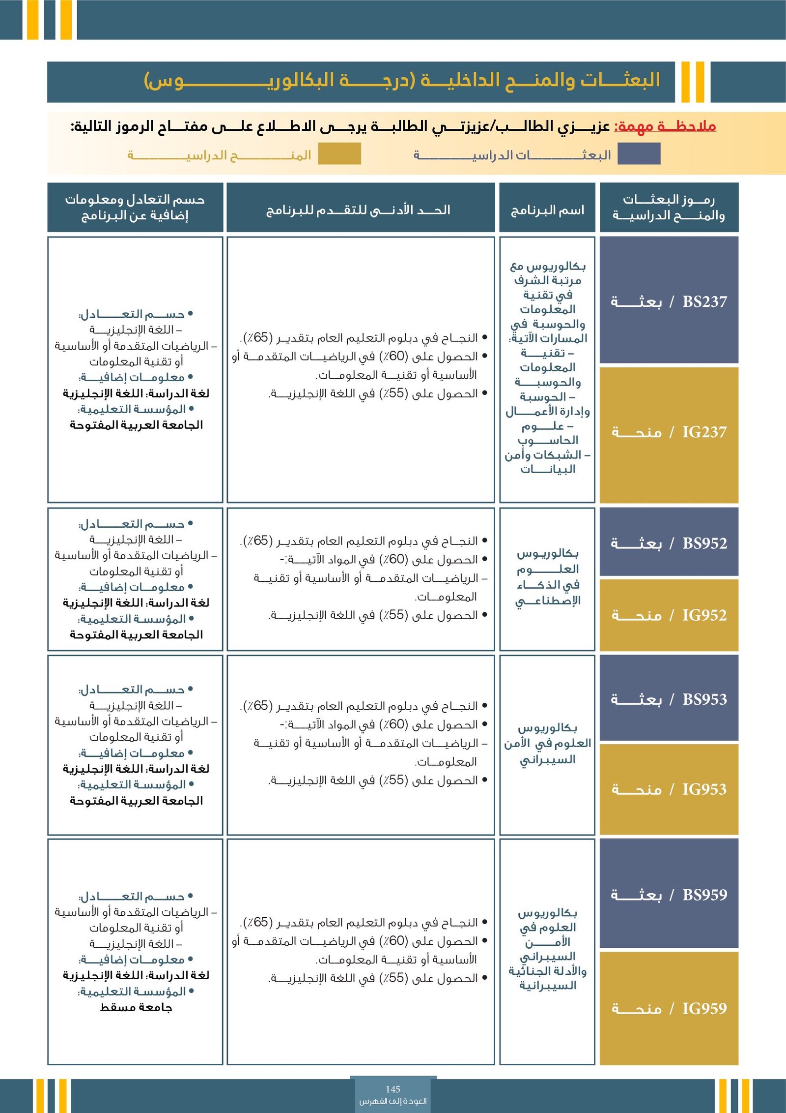 | BS970 | بكالوريوس التربية (الفيزياء) | البعثات الداخلية | أخرى | التفاصيل بالمرجع | اجتياز المقابلة الشخصية