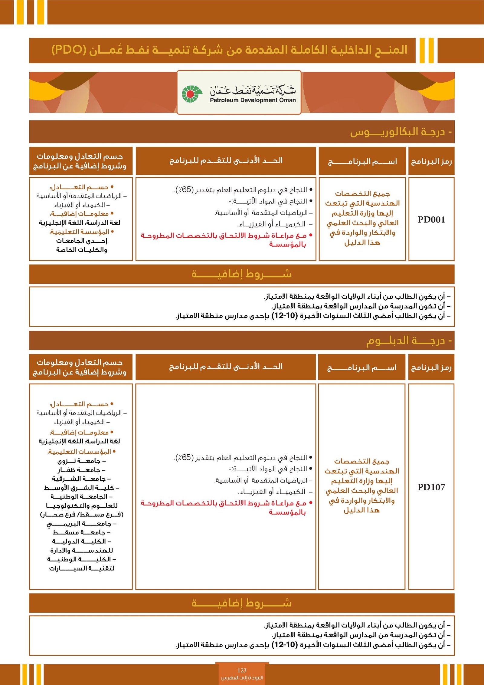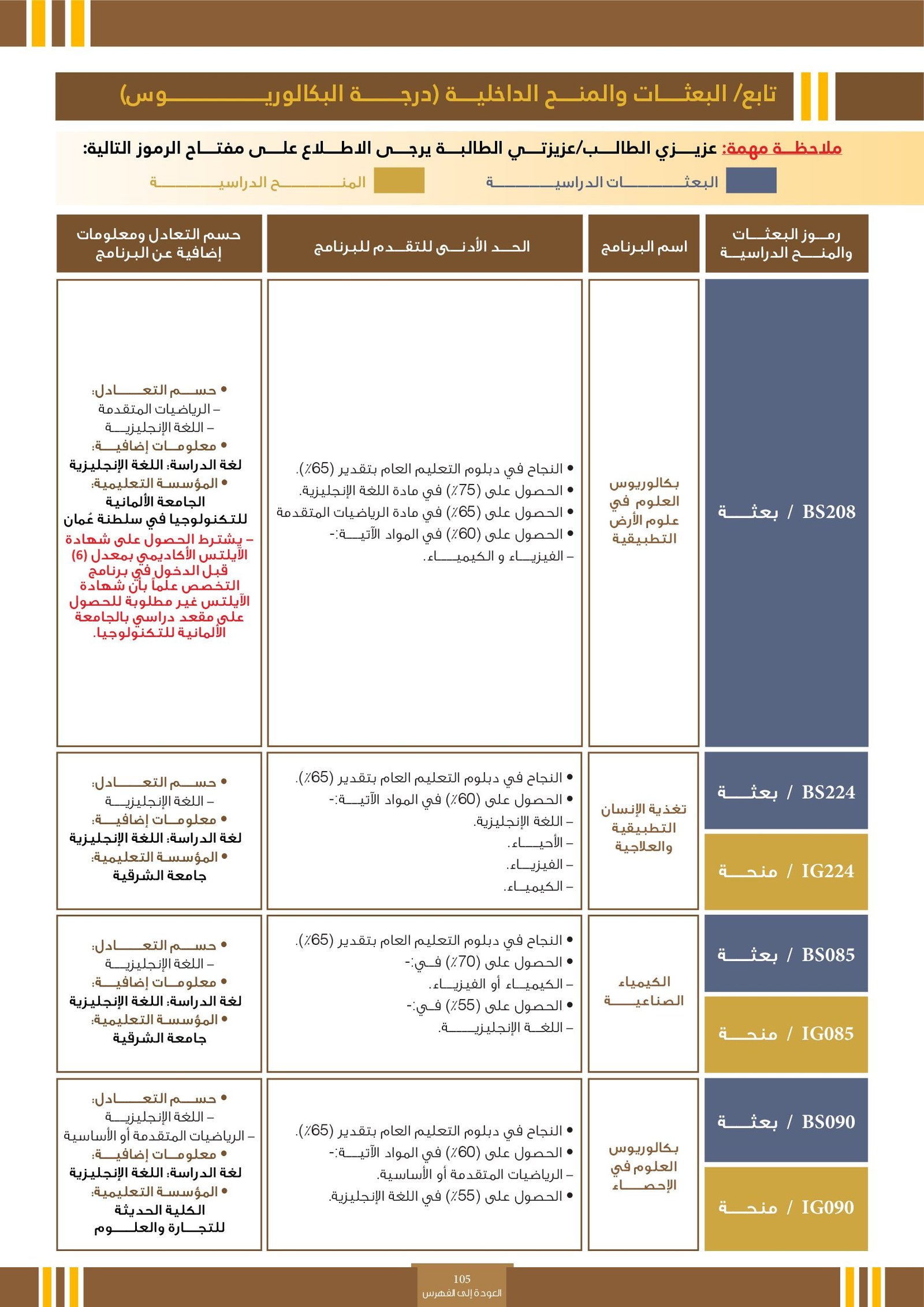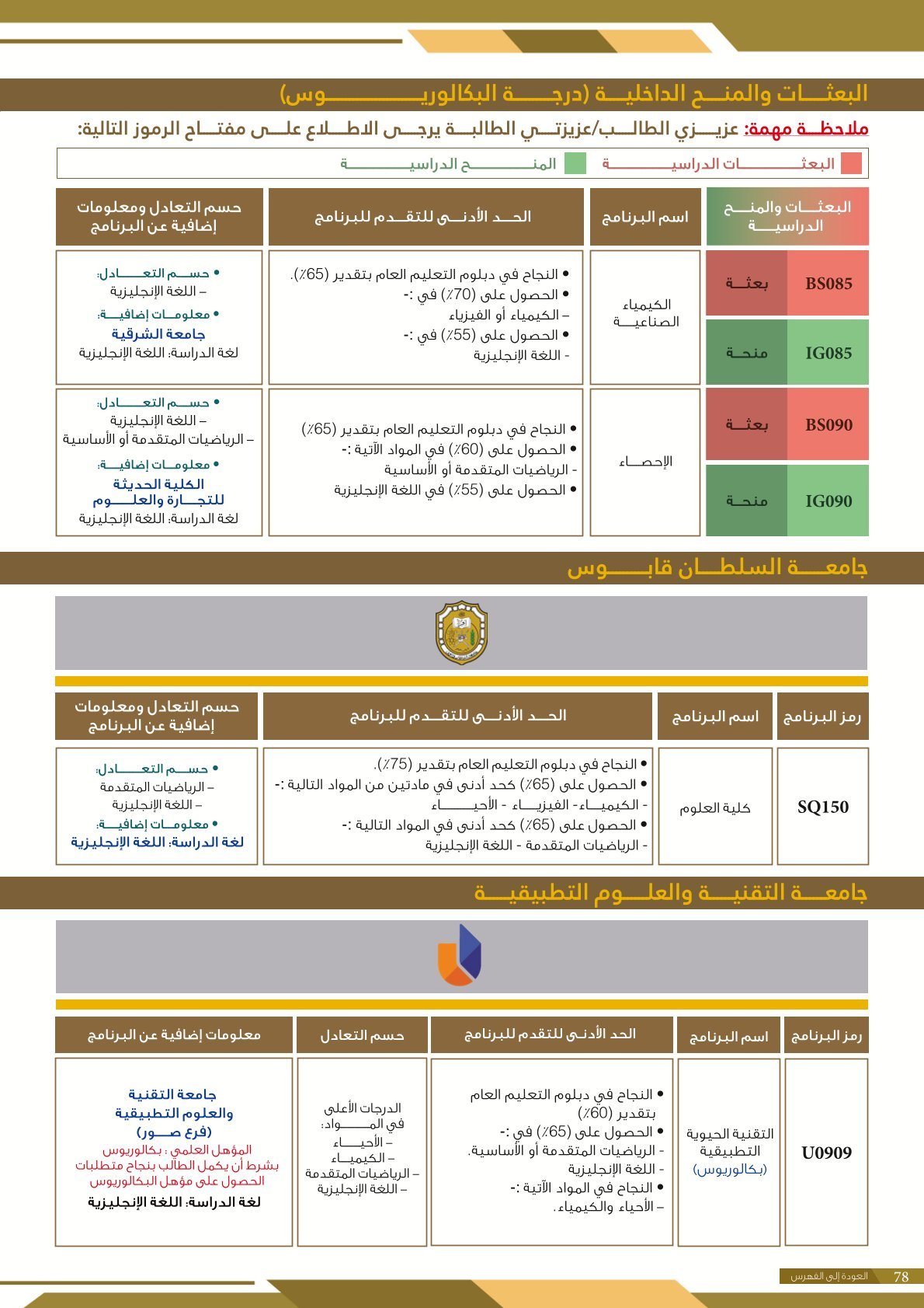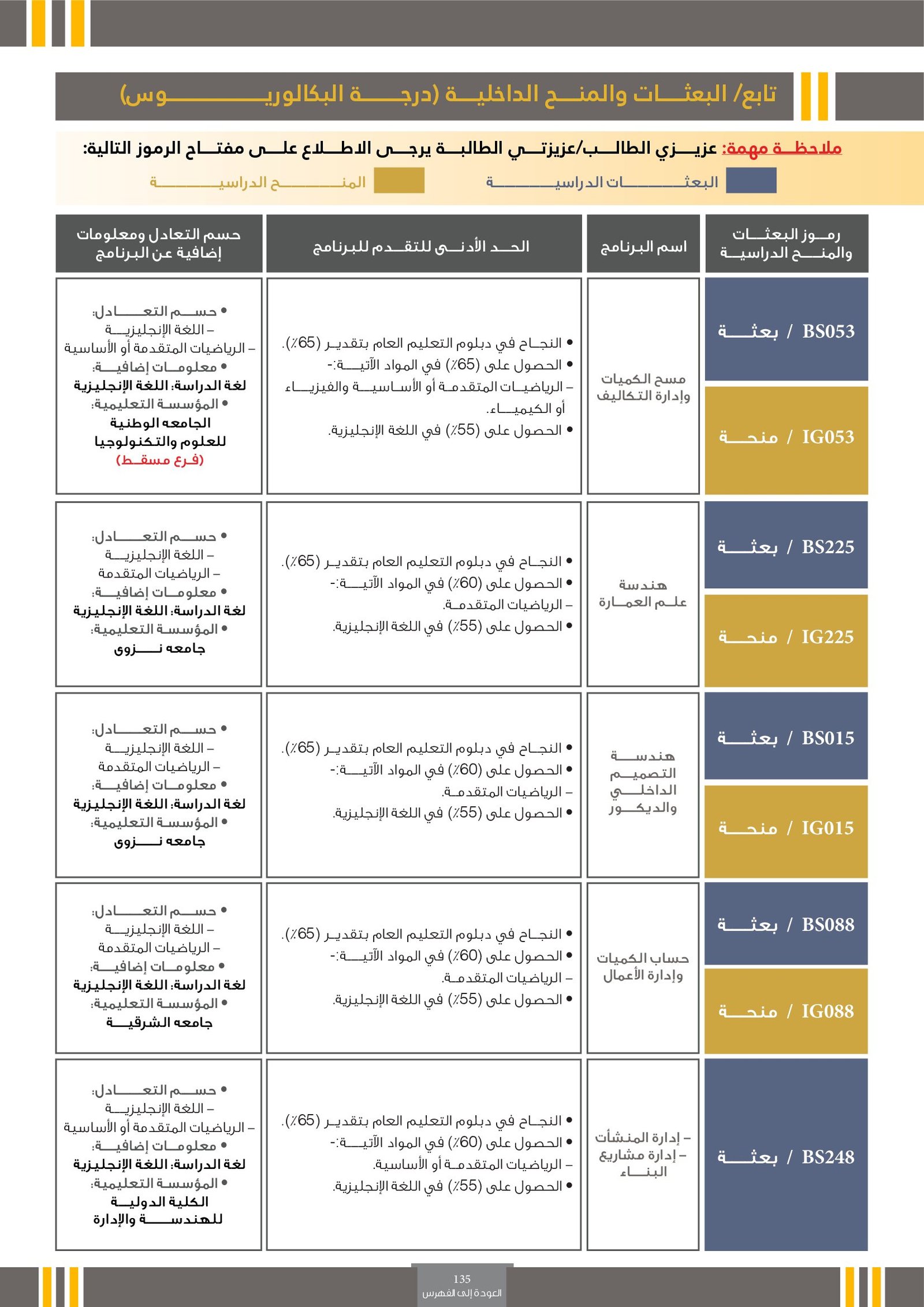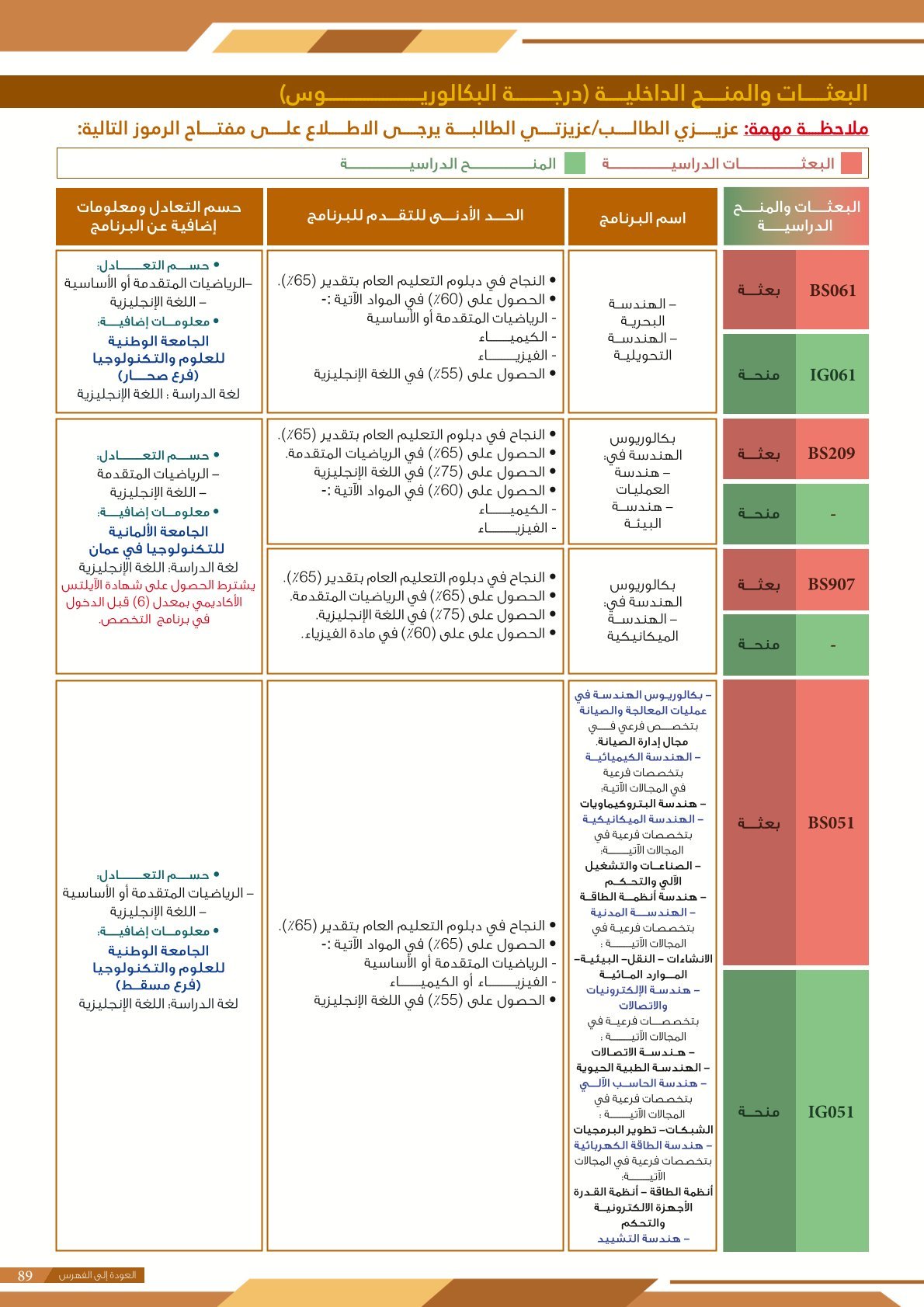 | BS970 | بكالوريوس التربية (الفيزياء) | البعثات الداخلية | أخرى | التفاصيل بالمرجع | اجتياز المقابلة الشخصية
