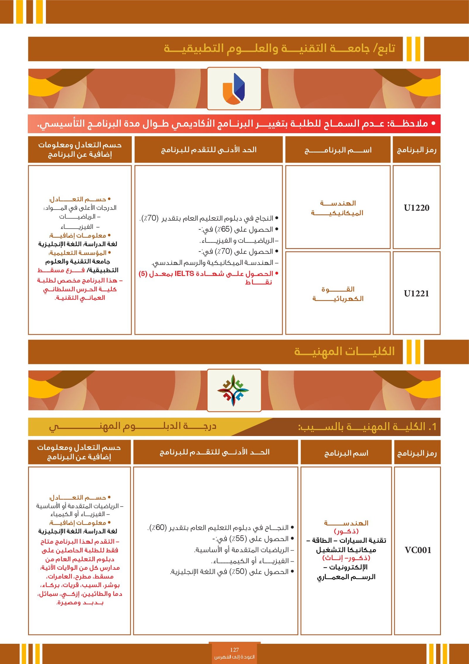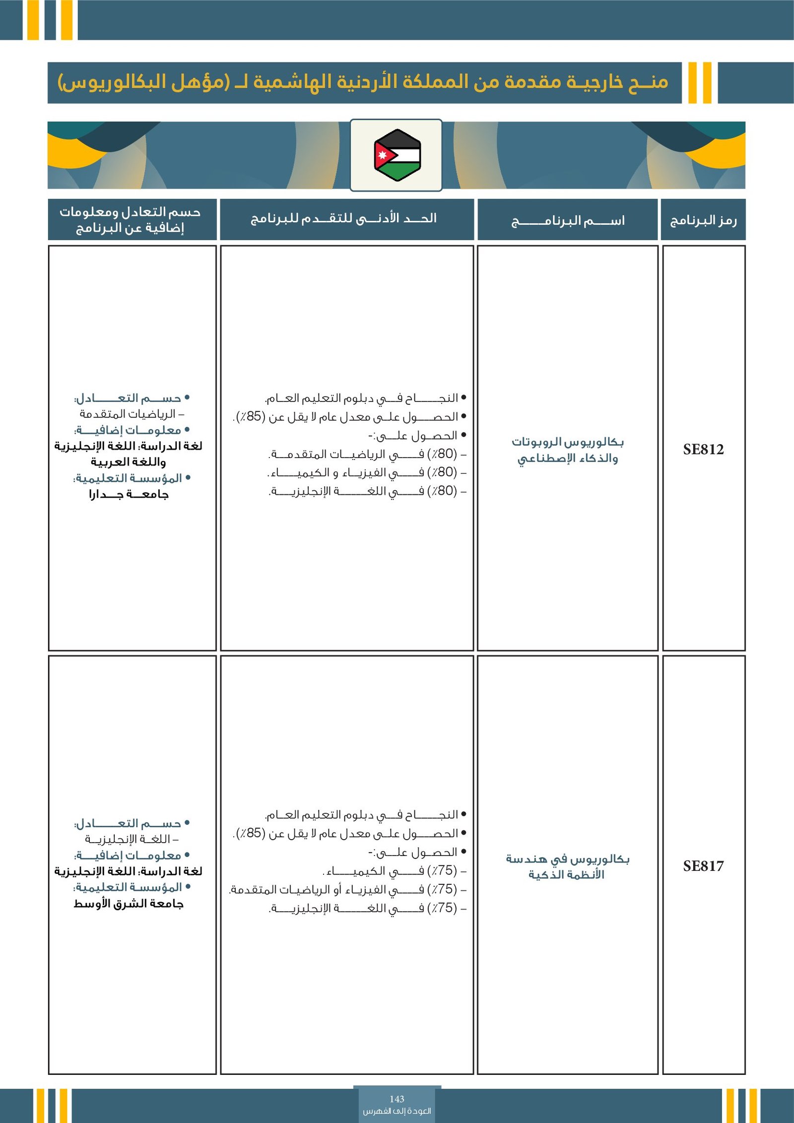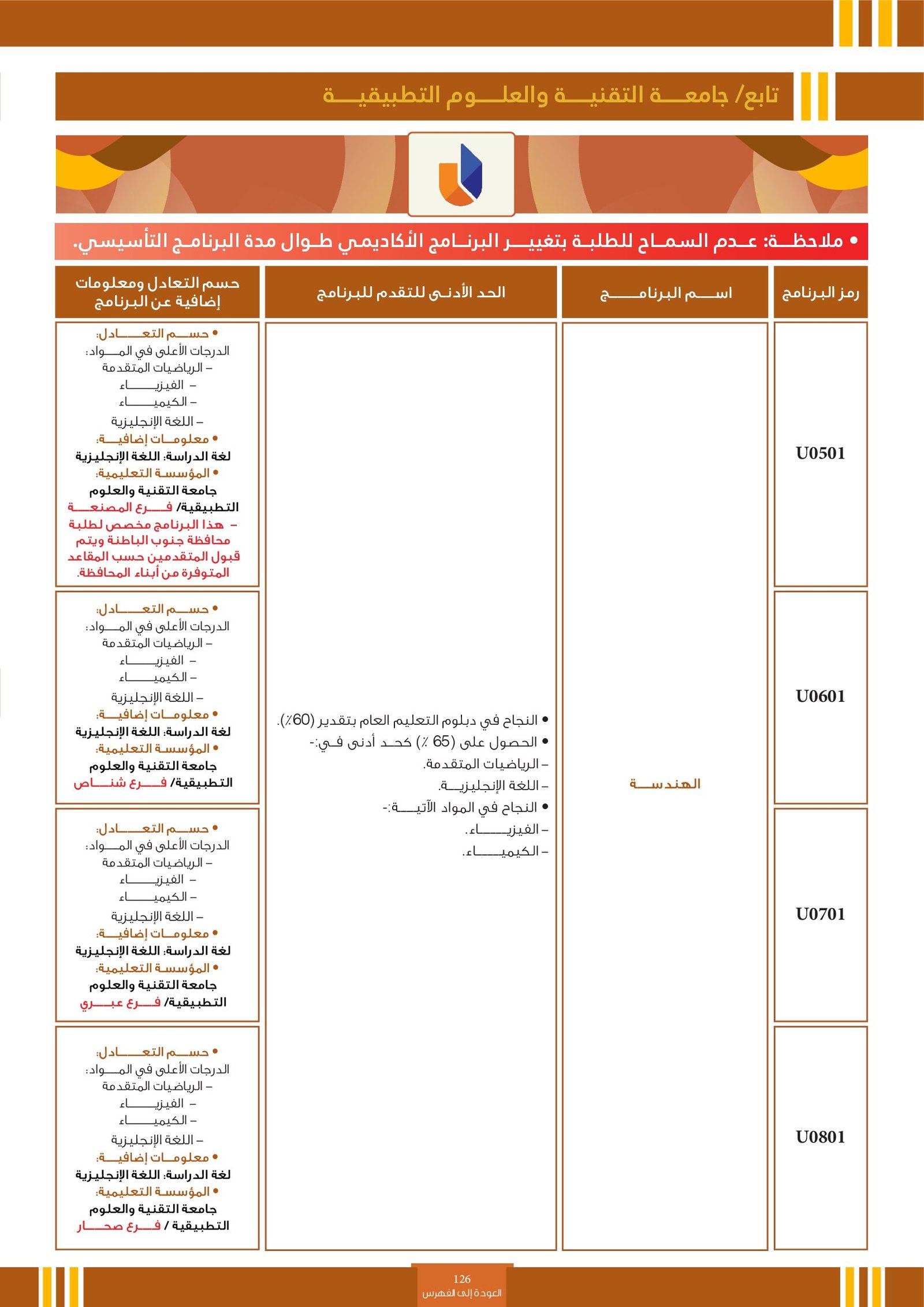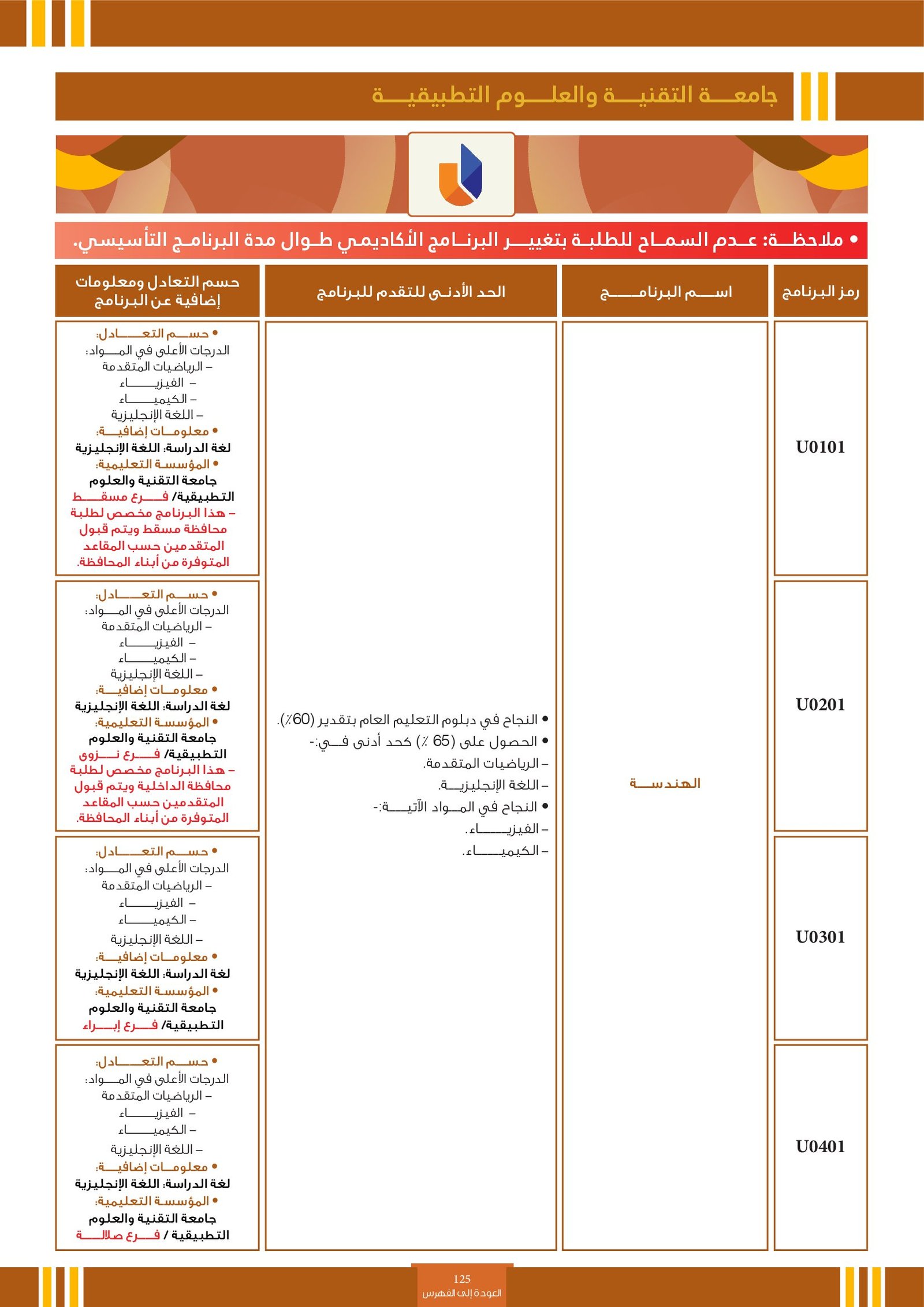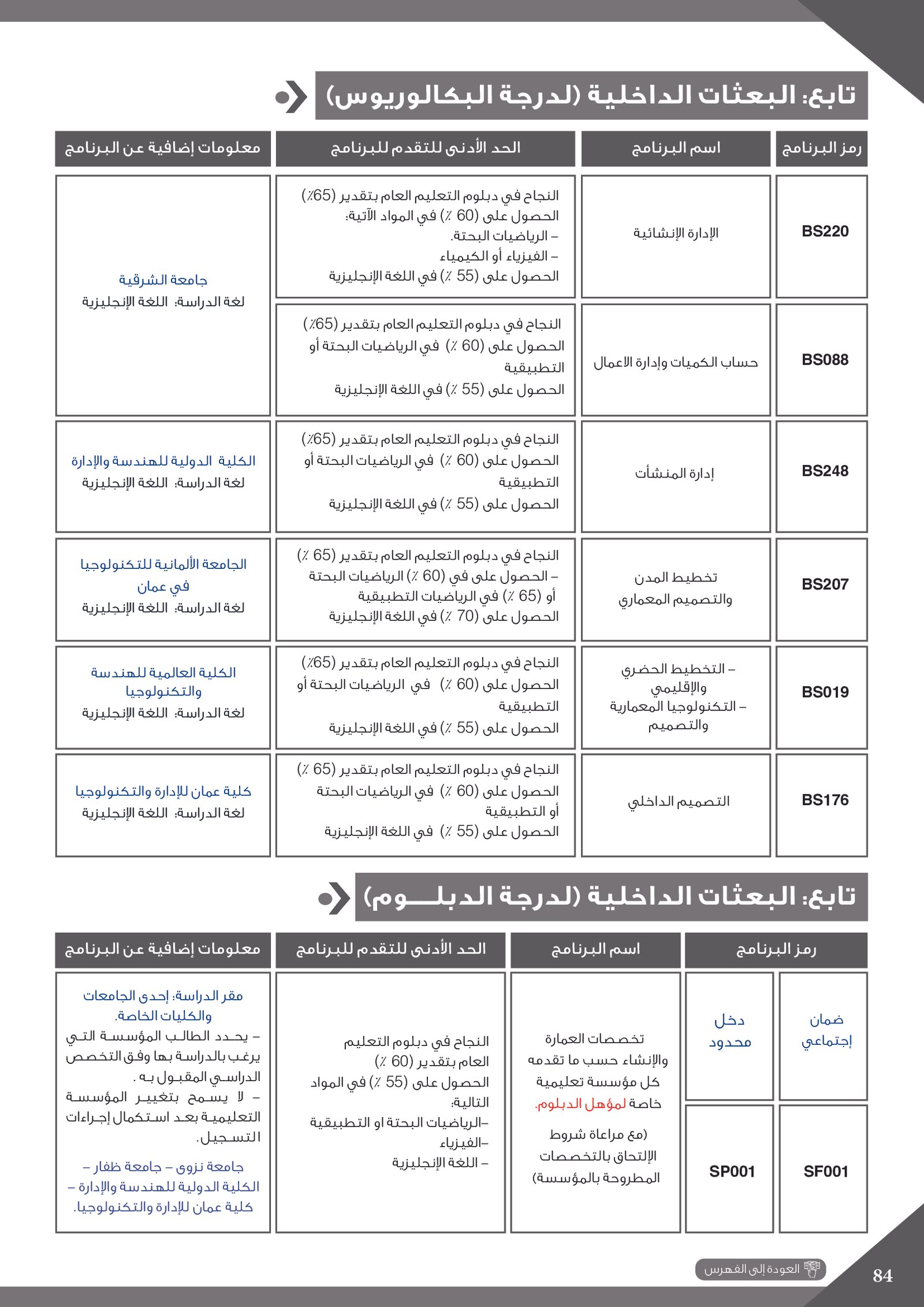 | ..... | البرنامج مخصص للطلبة ذوي الإعاقة في جامعة التقنية والعلوم التطبيقية | البرامج الحكومية | أخرى | جامعة التقنية و العلوم التطبيقية | يرجى الاطلاع على المرجع لمعرفة المزيد من التفاصيل |