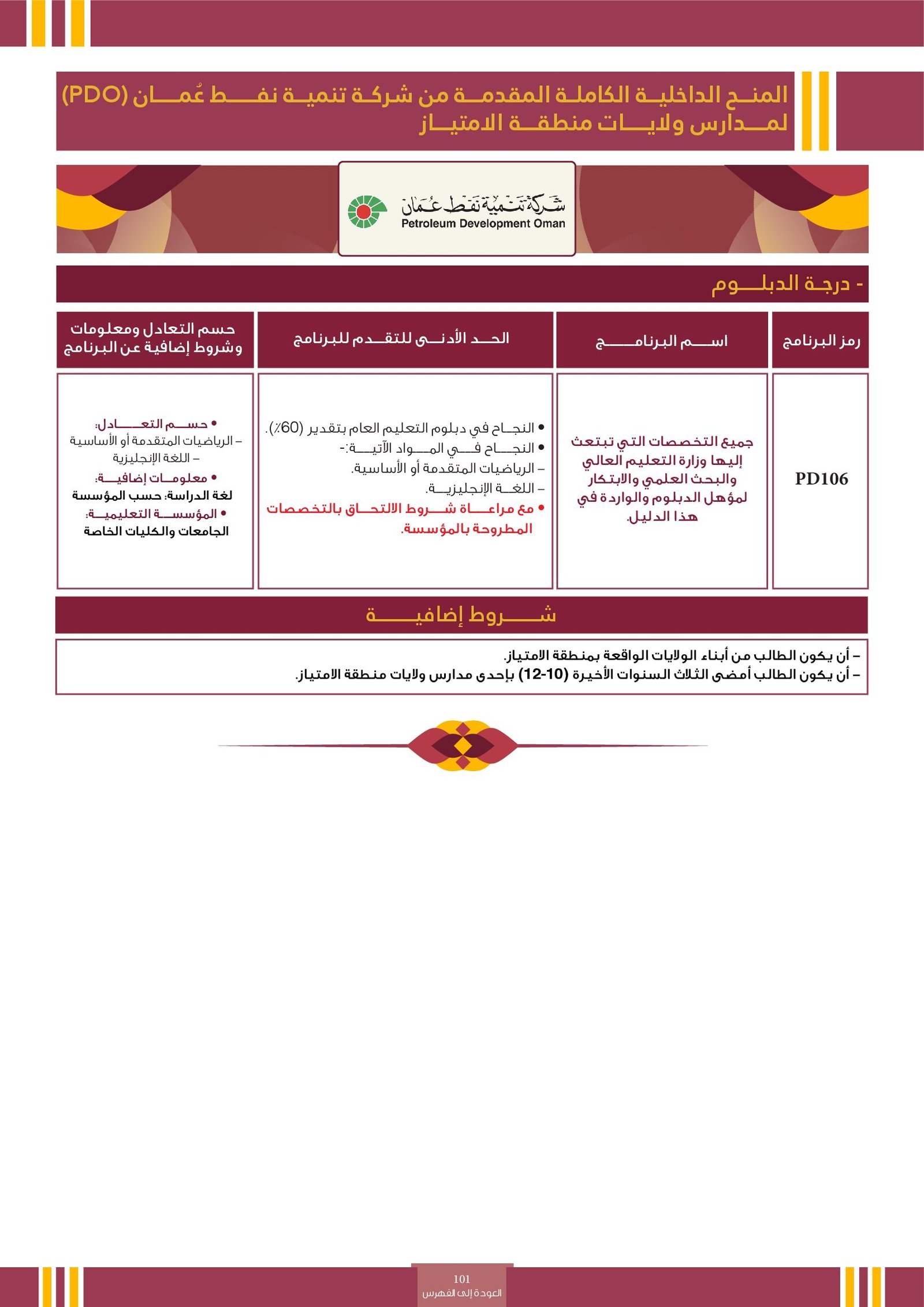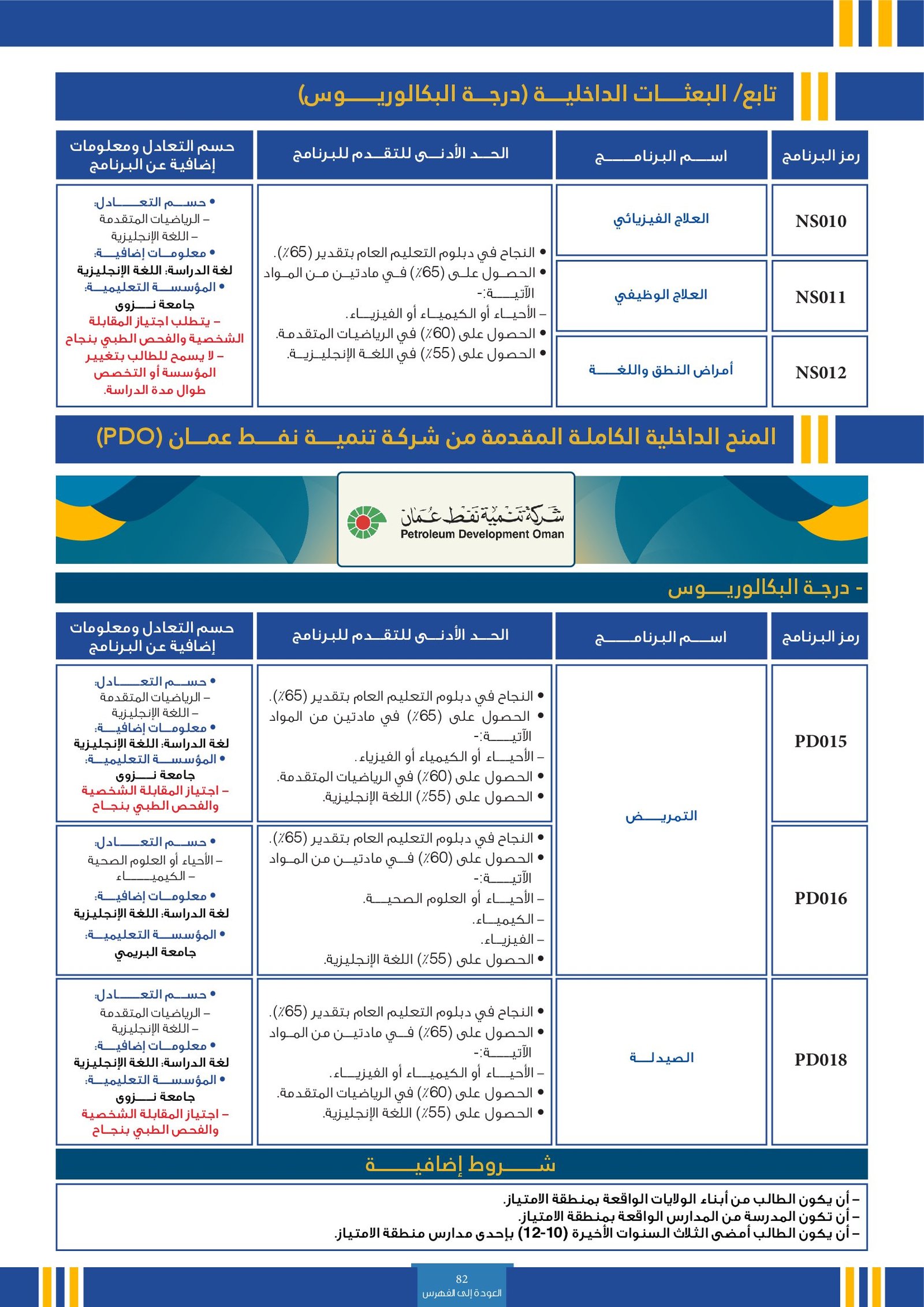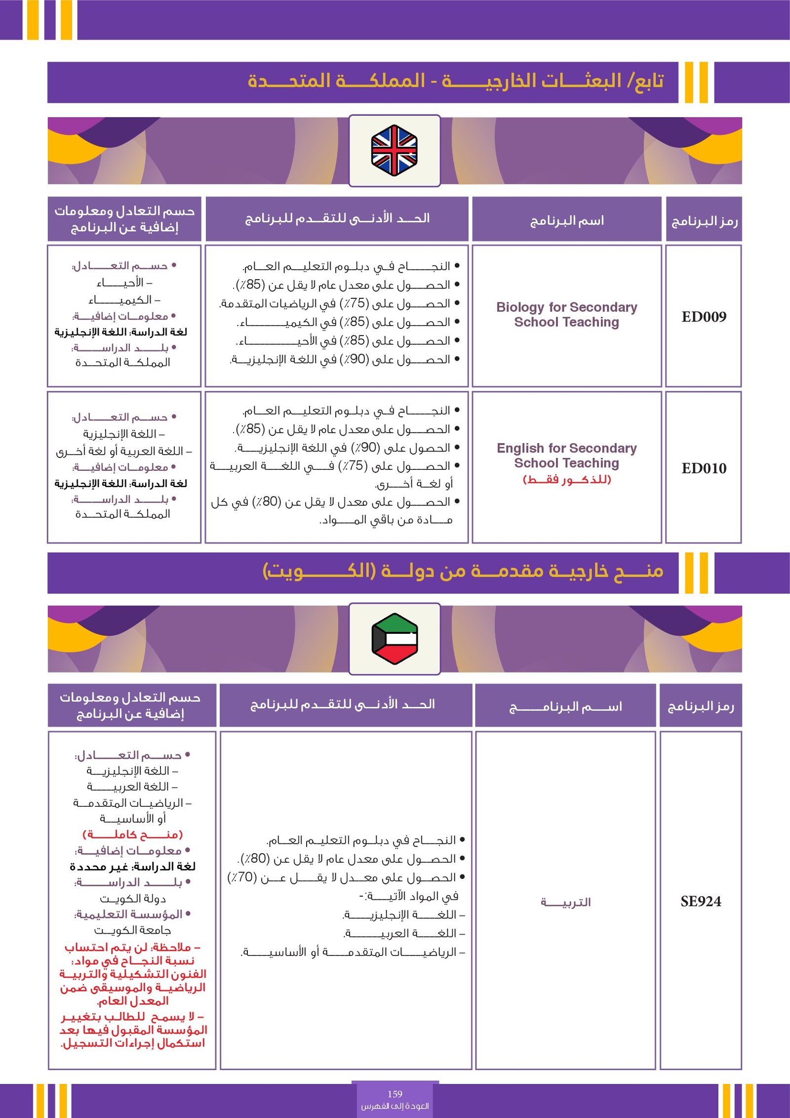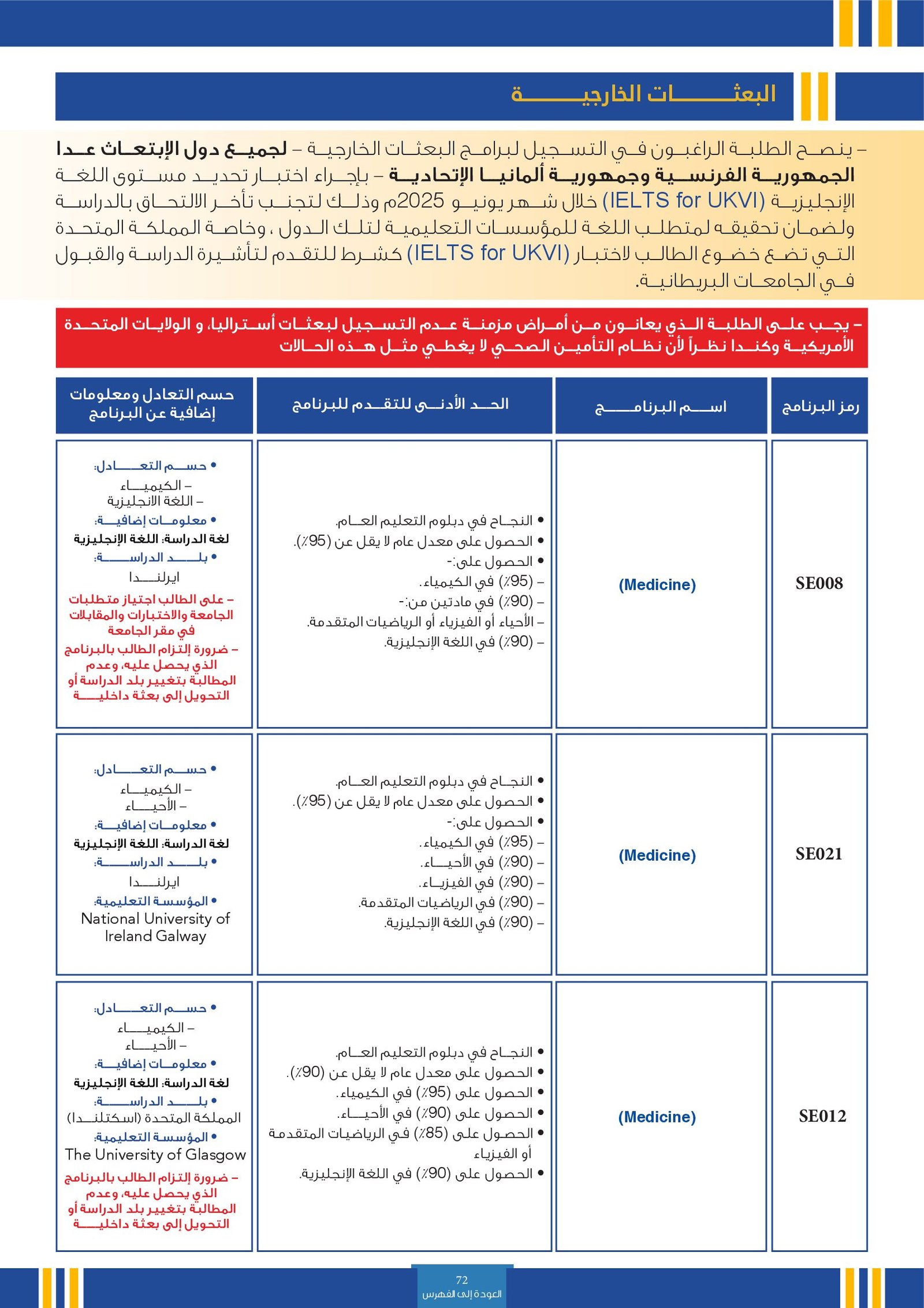 | SE012 | Medicine | البعثات الخارجية | أخرى | التفاصيل بالمرجع | النجاح في دبلوم التعليم العام.