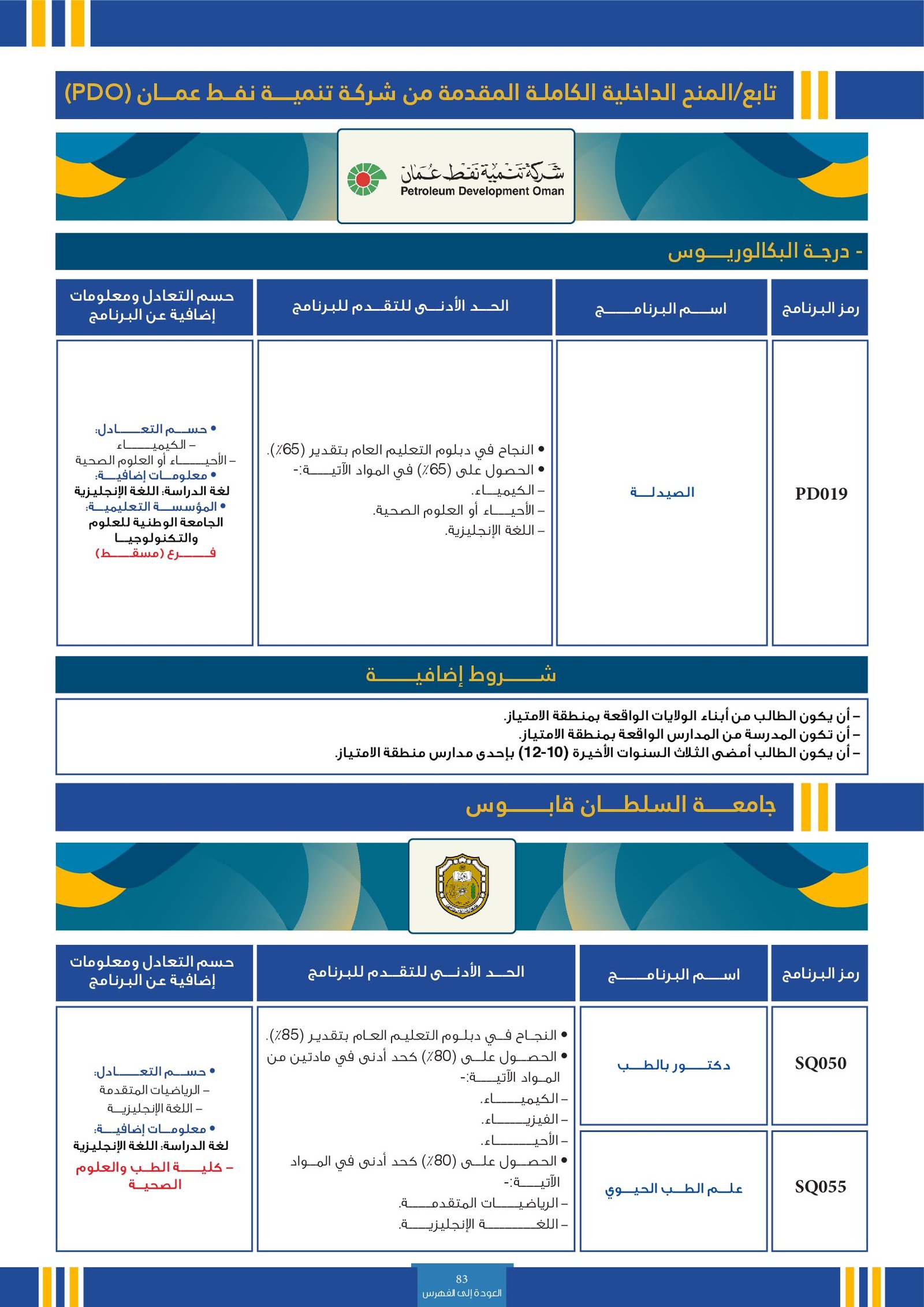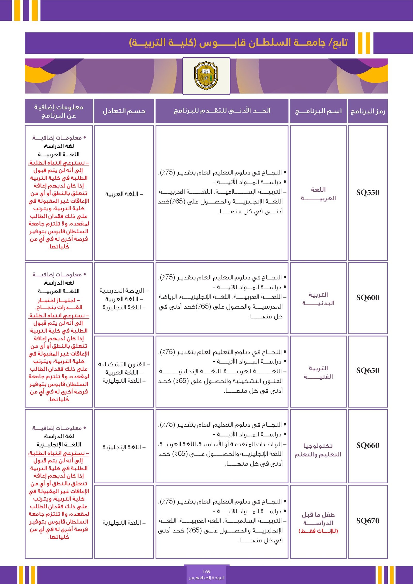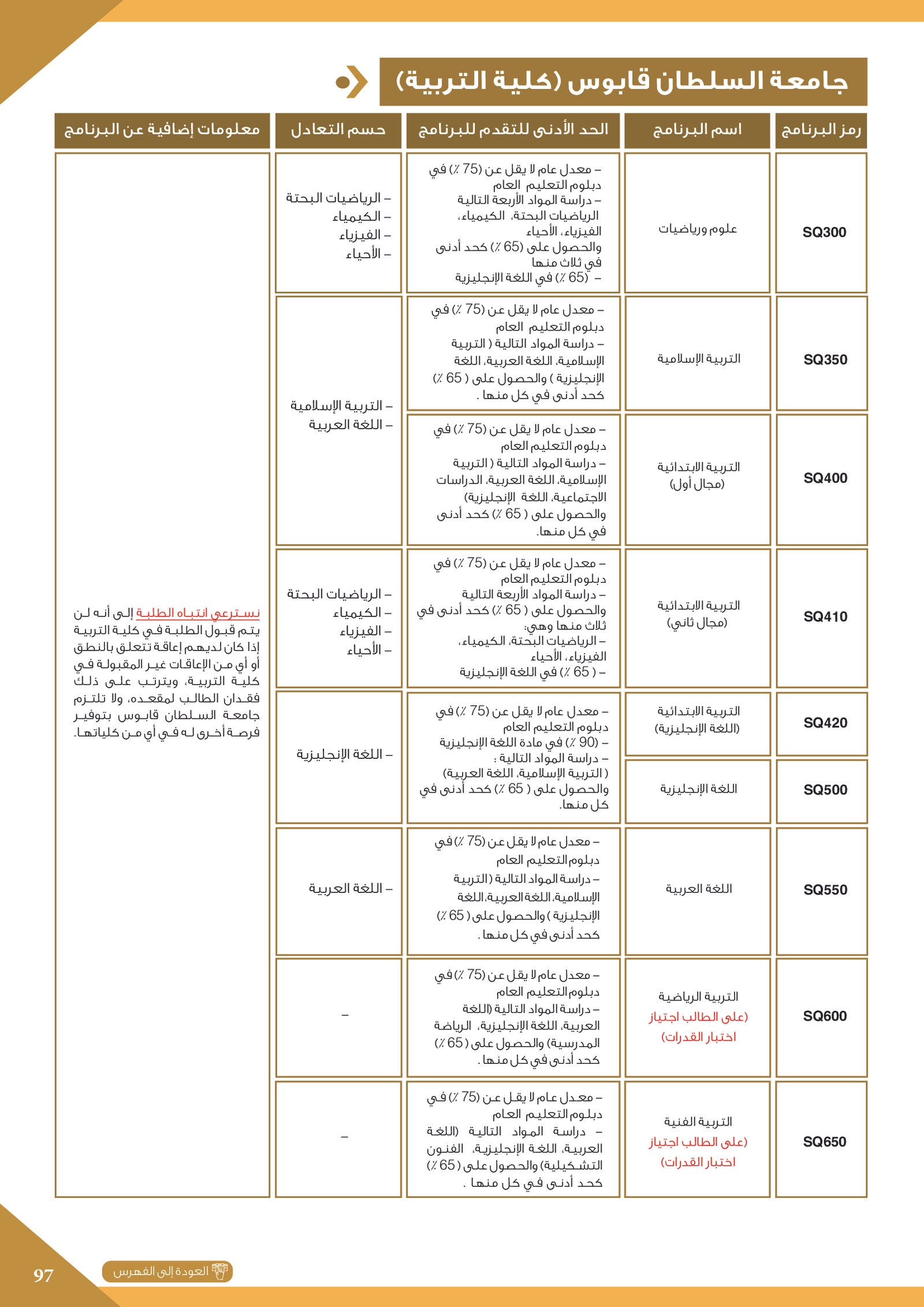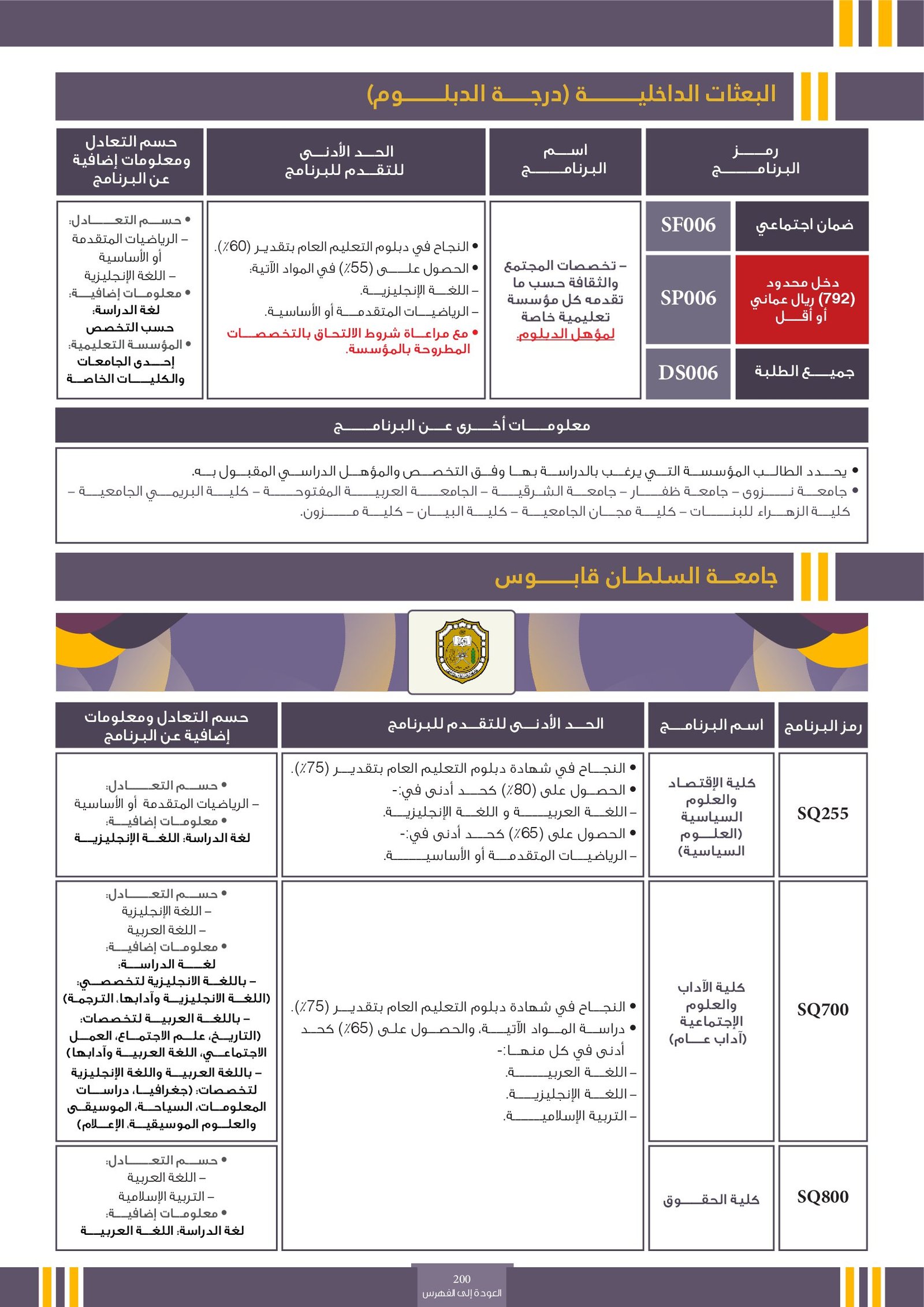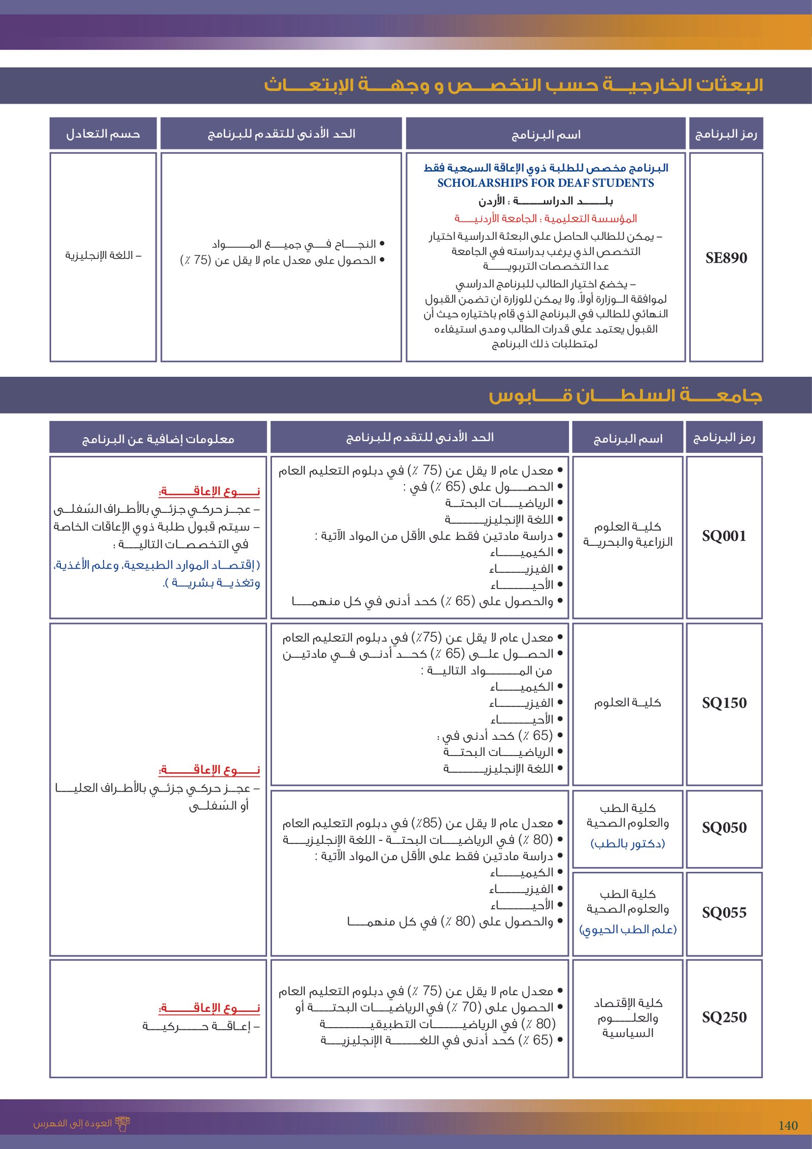 | ..... | تخصصات ذوي الاعاقة في جامعة السلطان قابوس 2 | البرامج الحكومية | أخرى | جامعة السلطان قابوس | لمعرفة التفاصيل نتمى الاطلاع على المرجع |