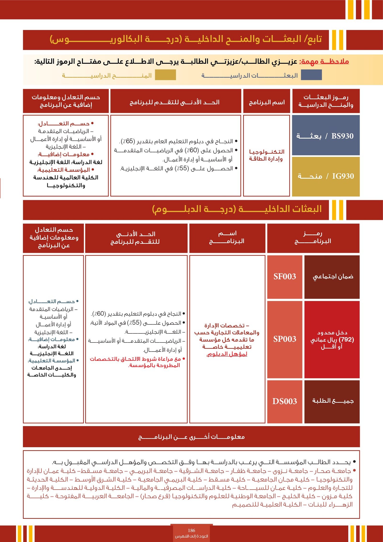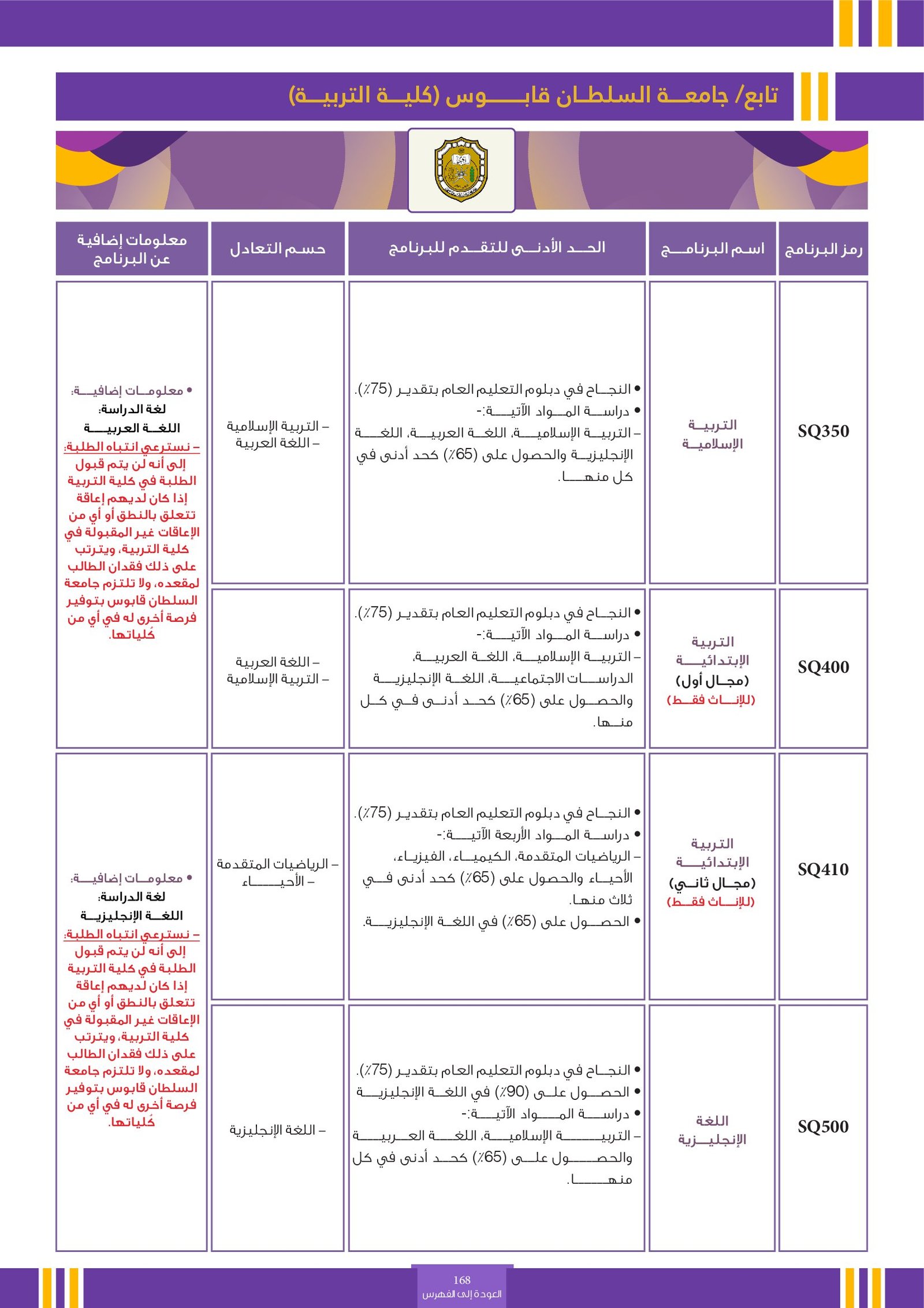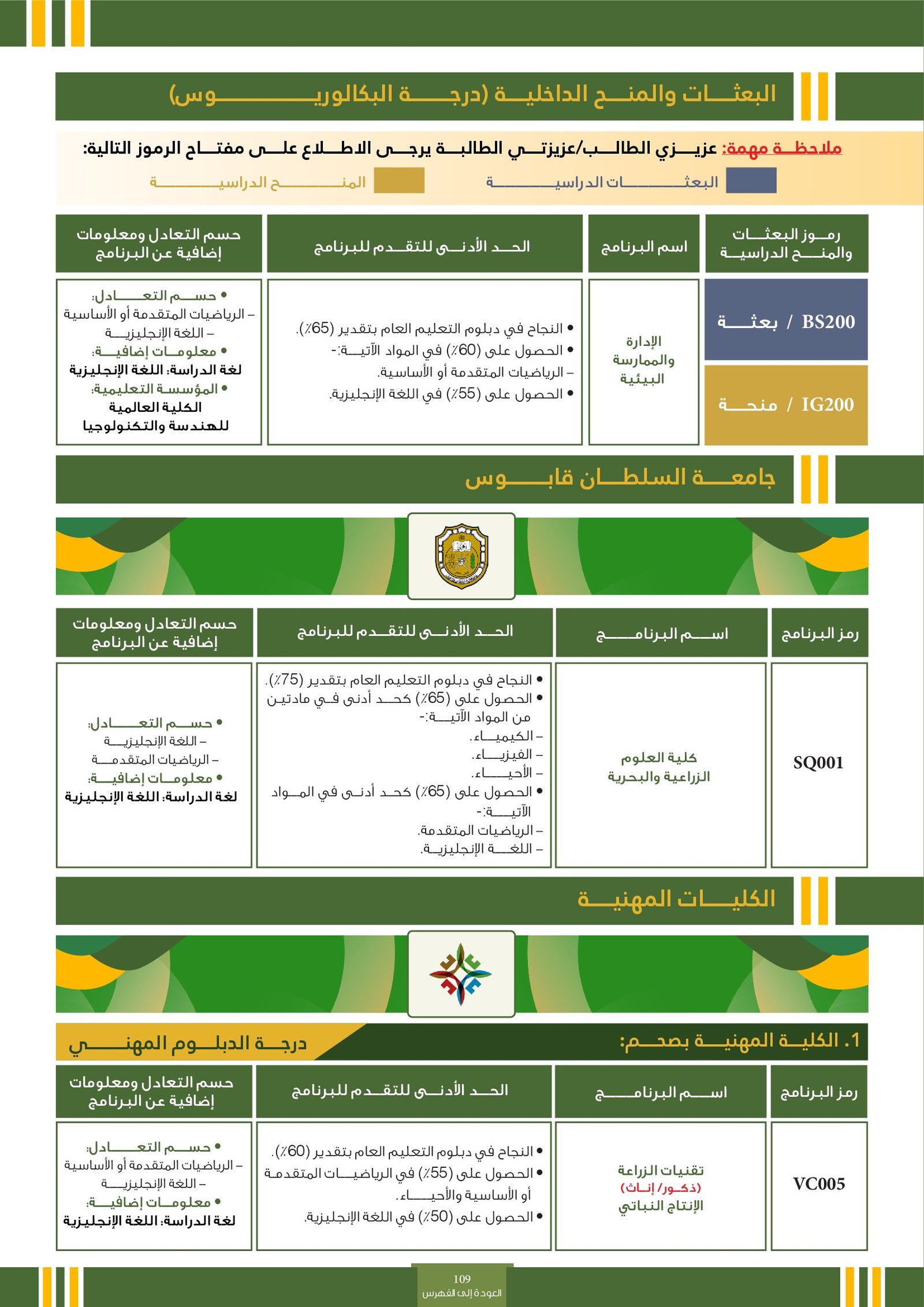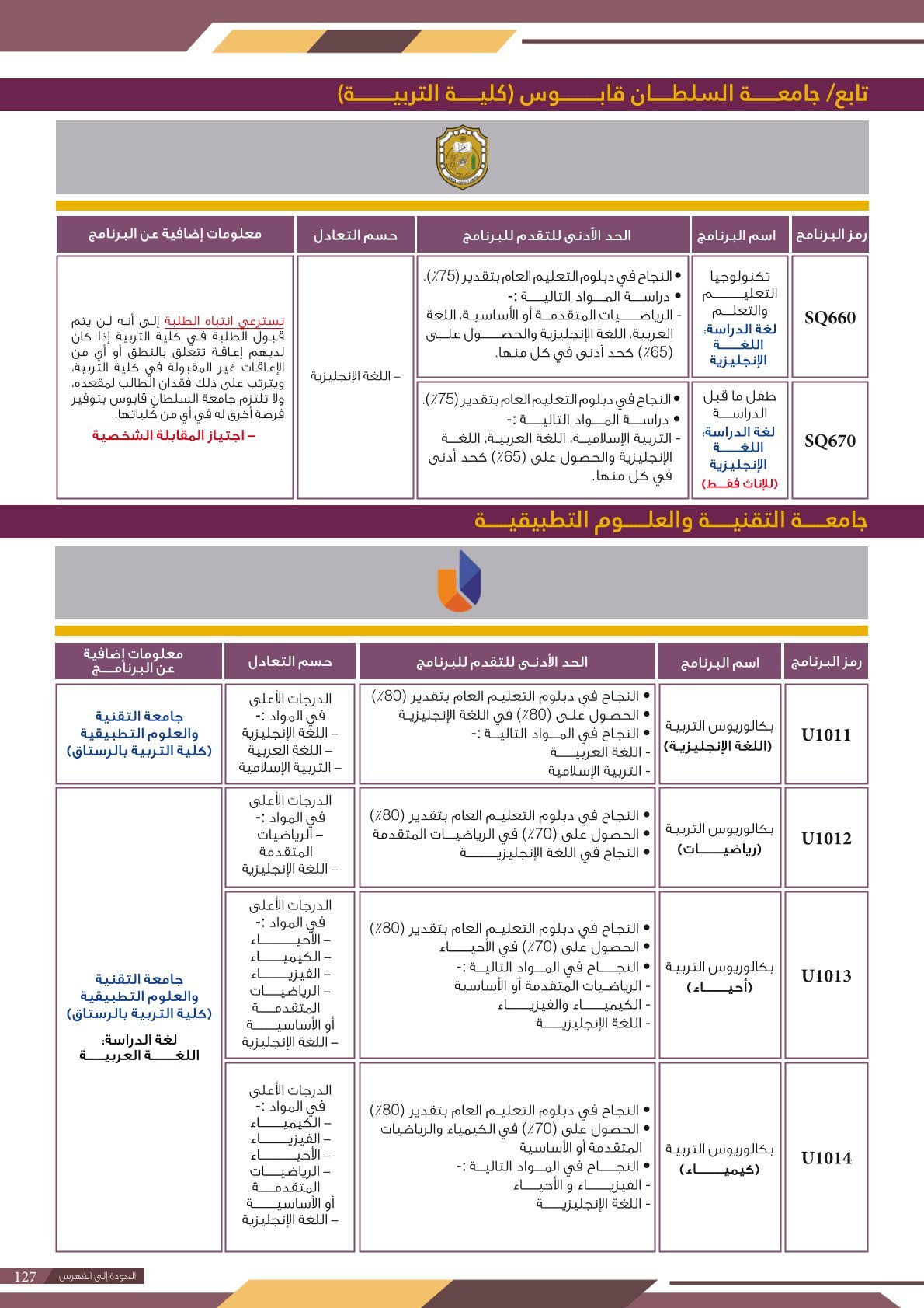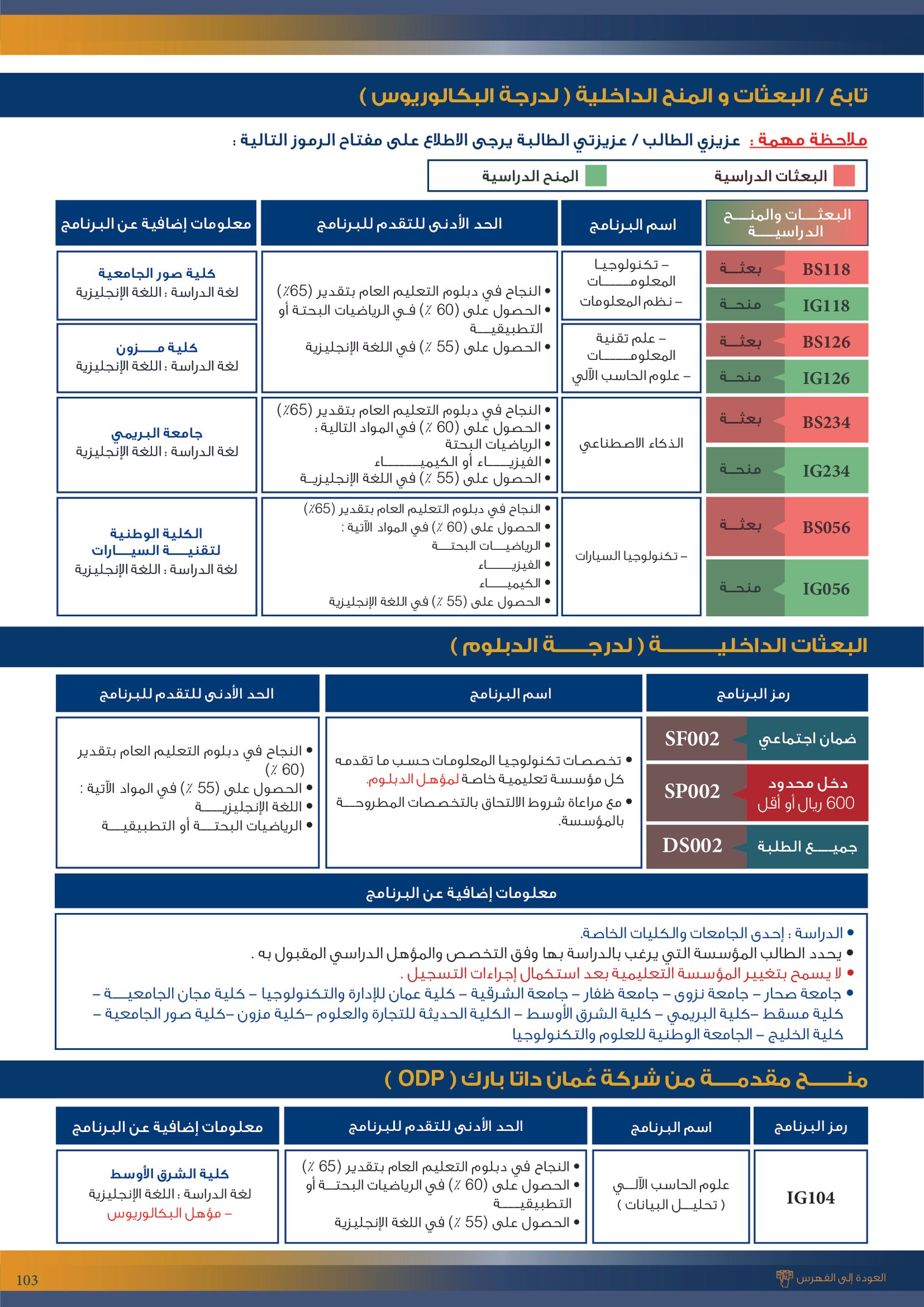 | ..... | تخصصات ذوي الاعاقة في جامعة السلطان قابوس 2 | البرامج الحكومية | أخرى | جامعة السلطان قابوس | لمعرفة التفاصيل نتمى الاطلاع على المرجع |
