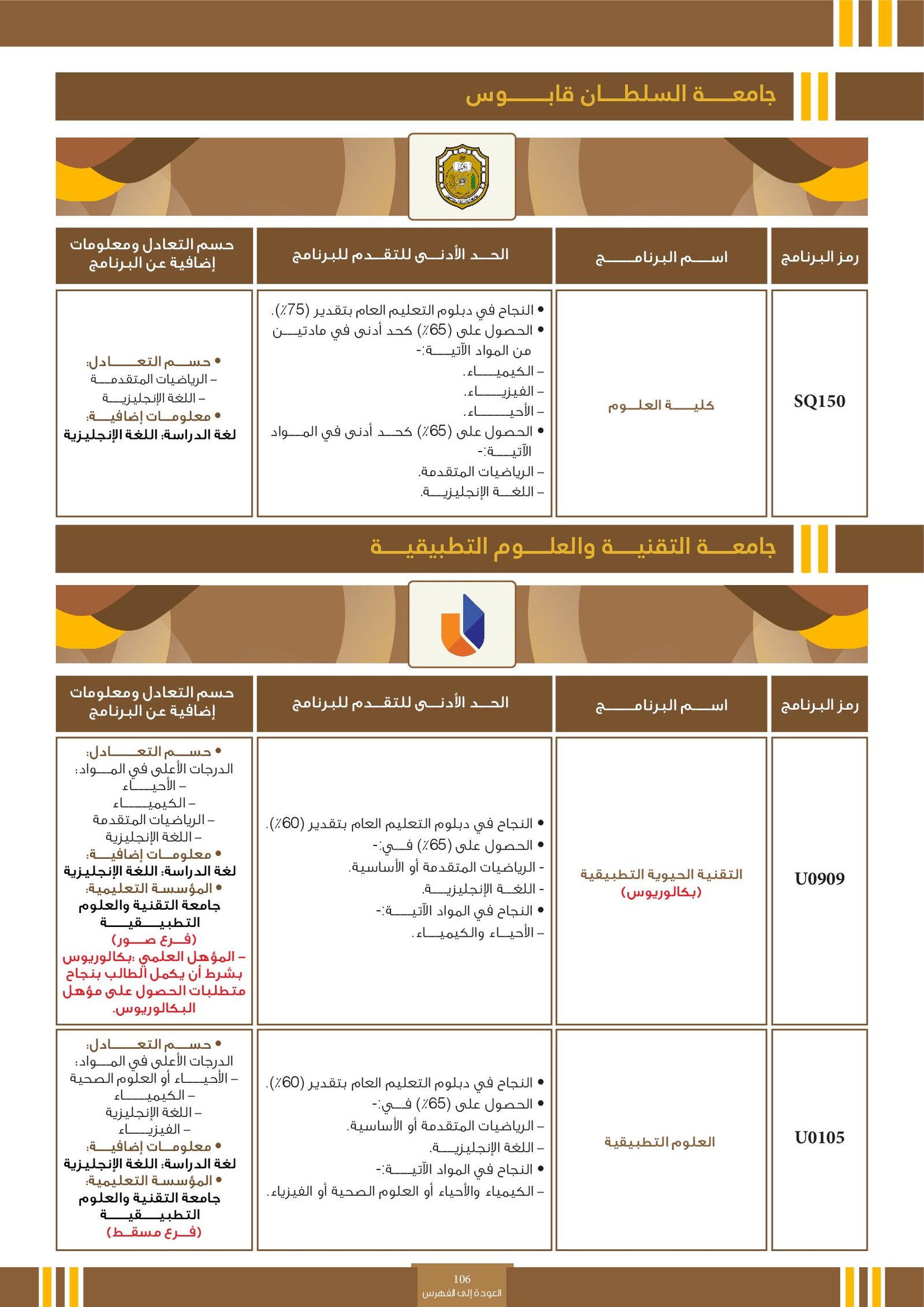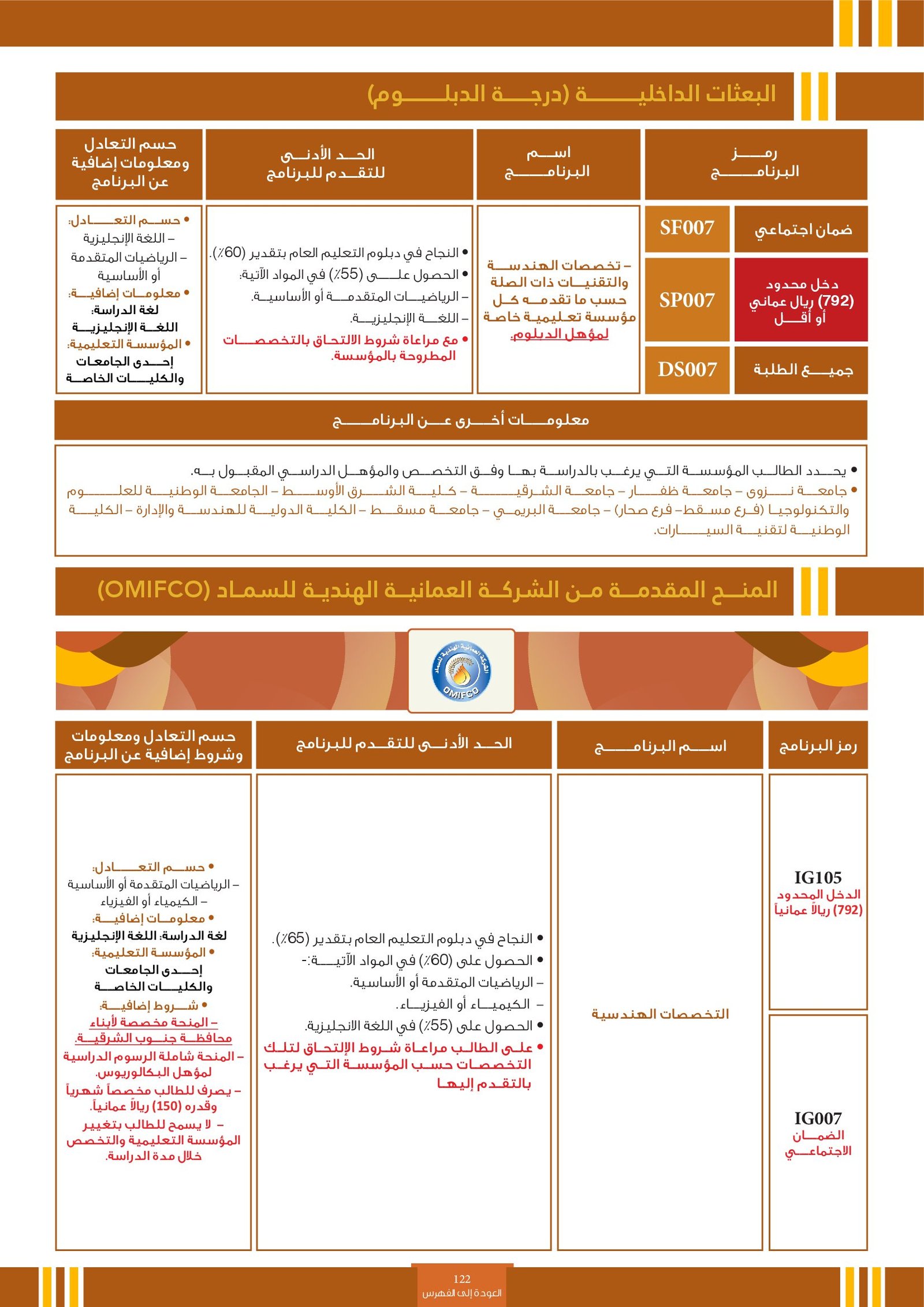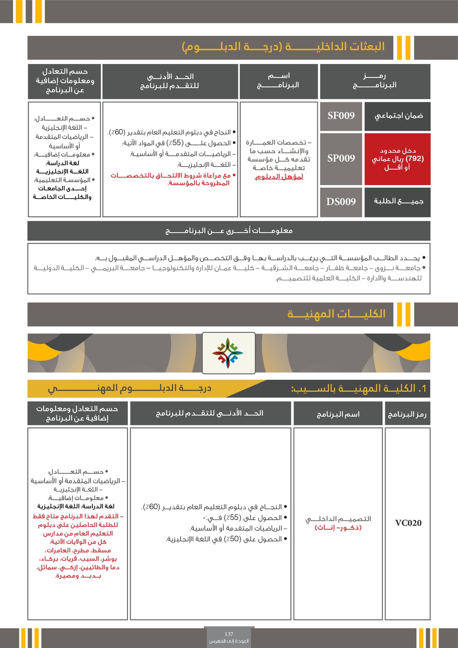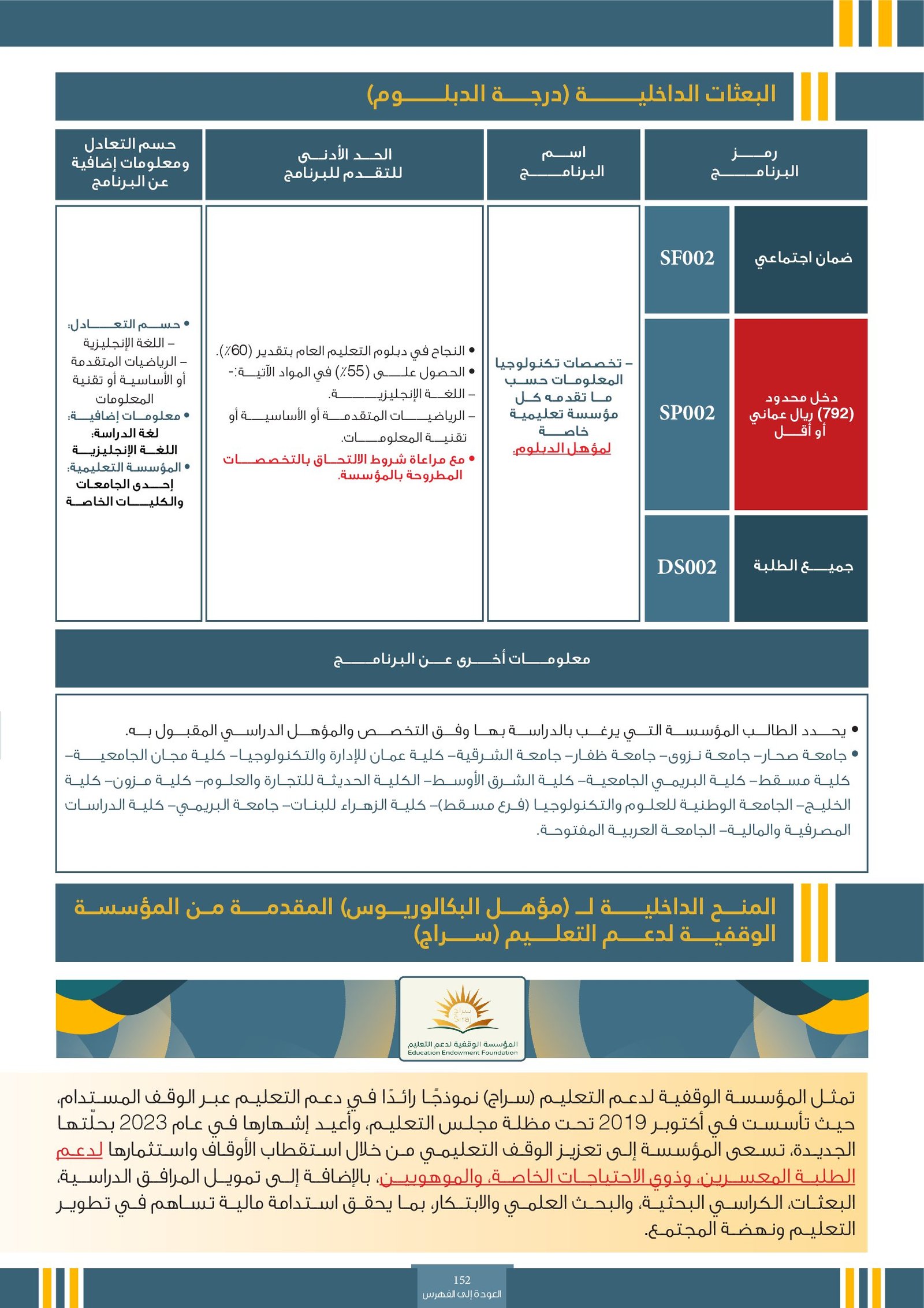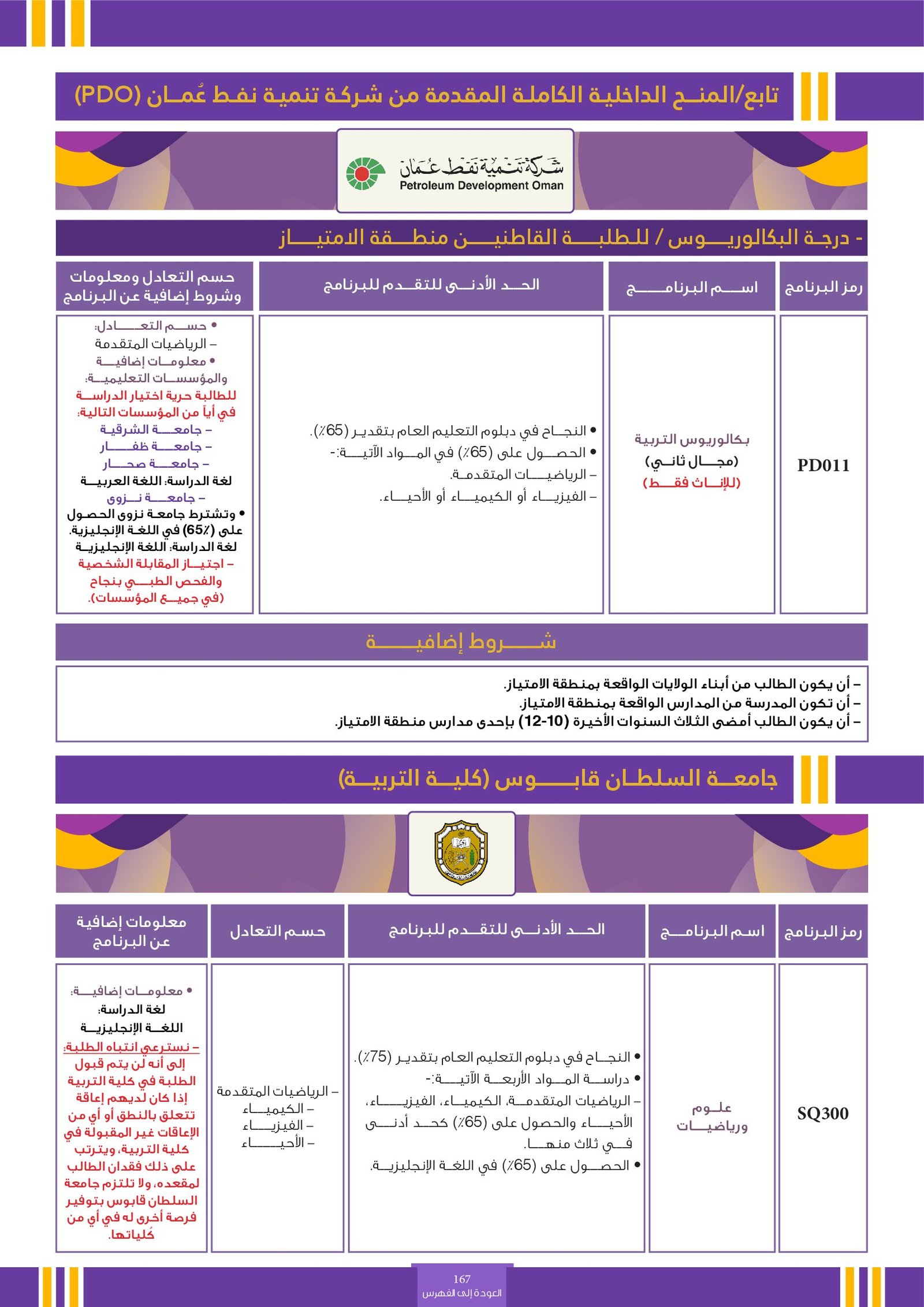 | ..... | تخصصات ذوي الاعاقة في جامعة السلطان قابوس 2 | البرامج الحكومية | أخرى | جامعة السلطان قابوس | لمعرفة التفاصيل نتمى الاطلاع على المرجع |