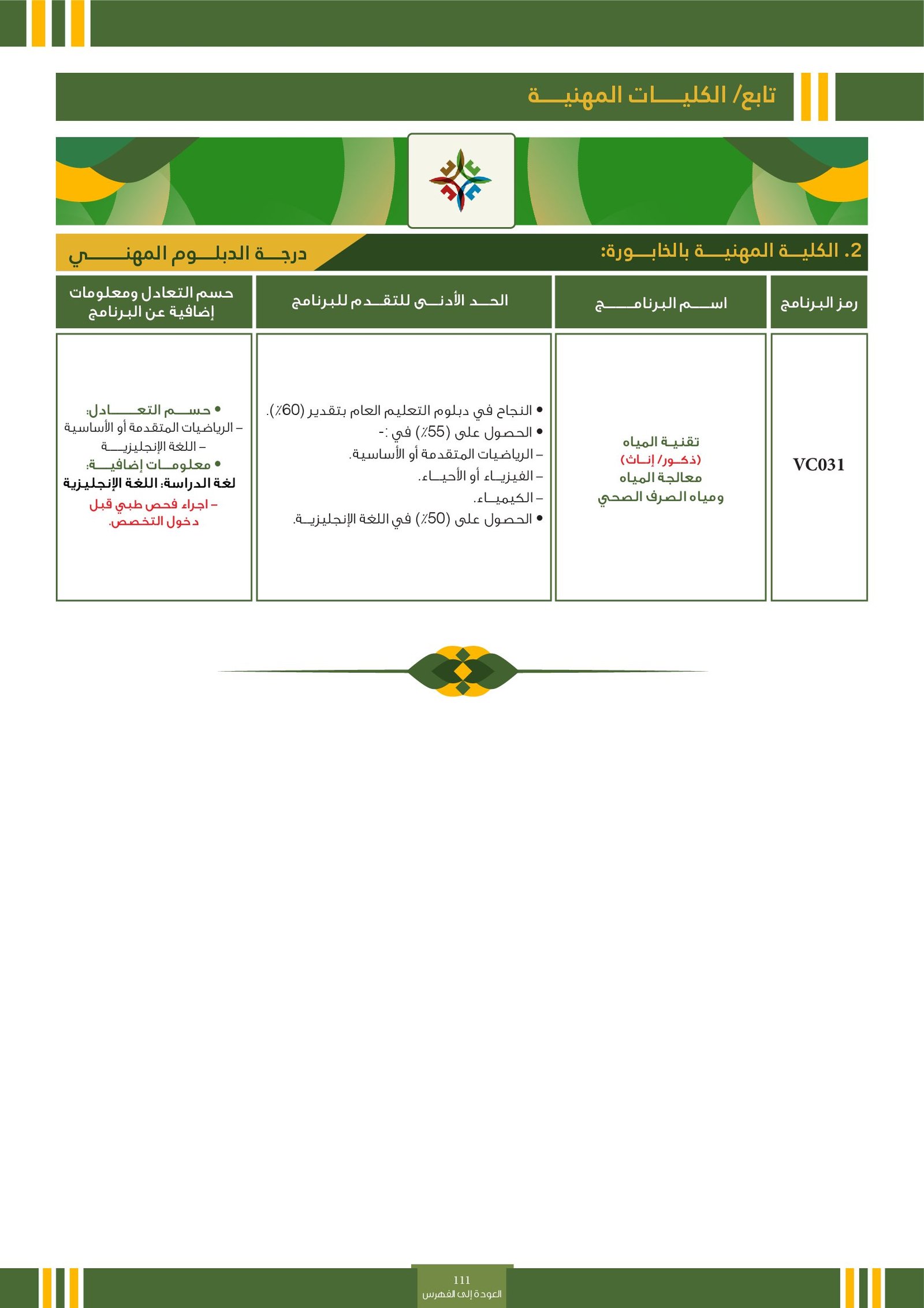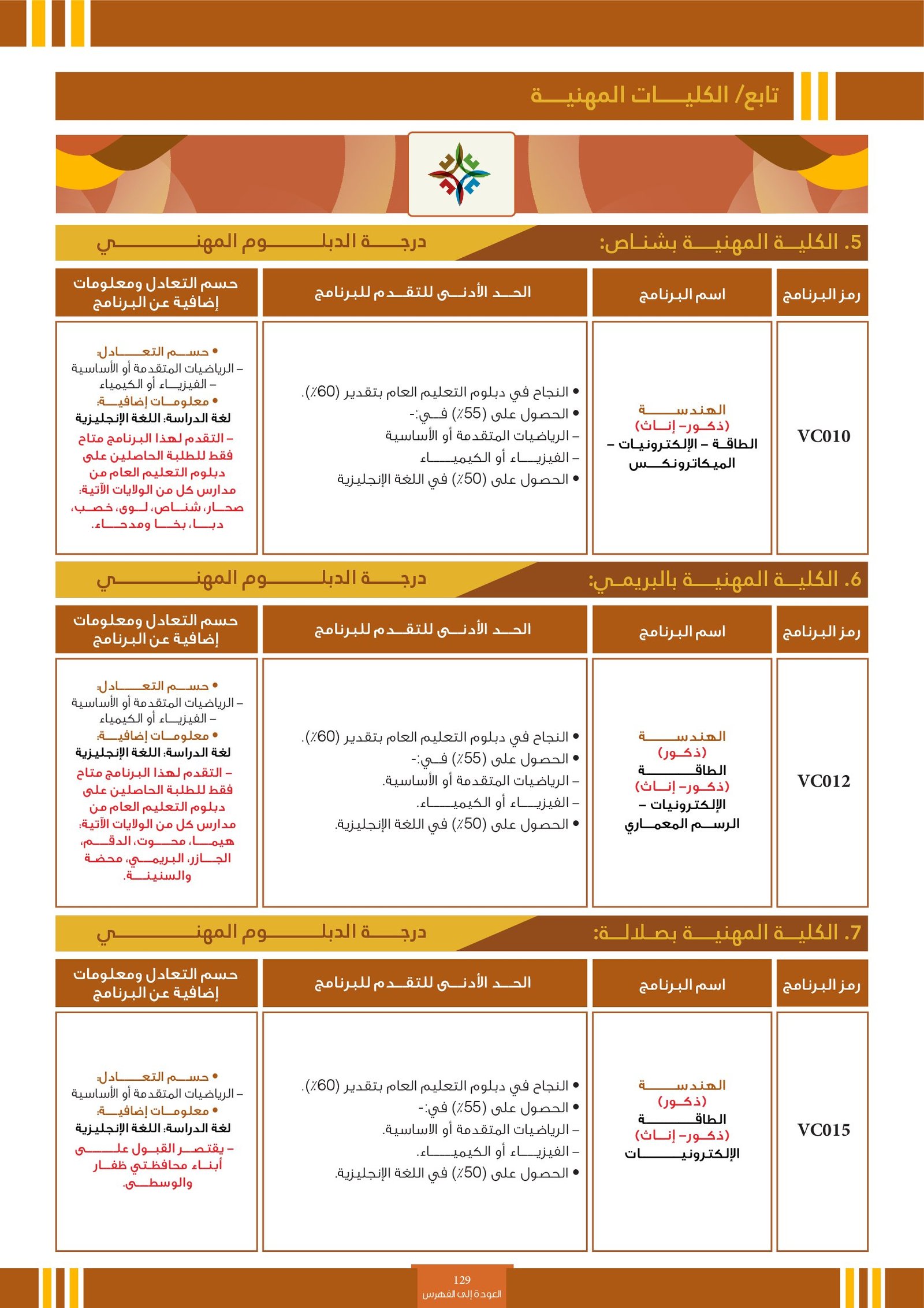 ويحق للطالب اختيار المؤسسة التعليمية وأحد التخصصات المتاحة في هذا المجال، مع ضرورة مراعاة شروط الالتحاق الخاصة بكل تخصص، مثل المواد المطلوبة أو الحد الأدنى من الدرجات أو المعدل العام. |