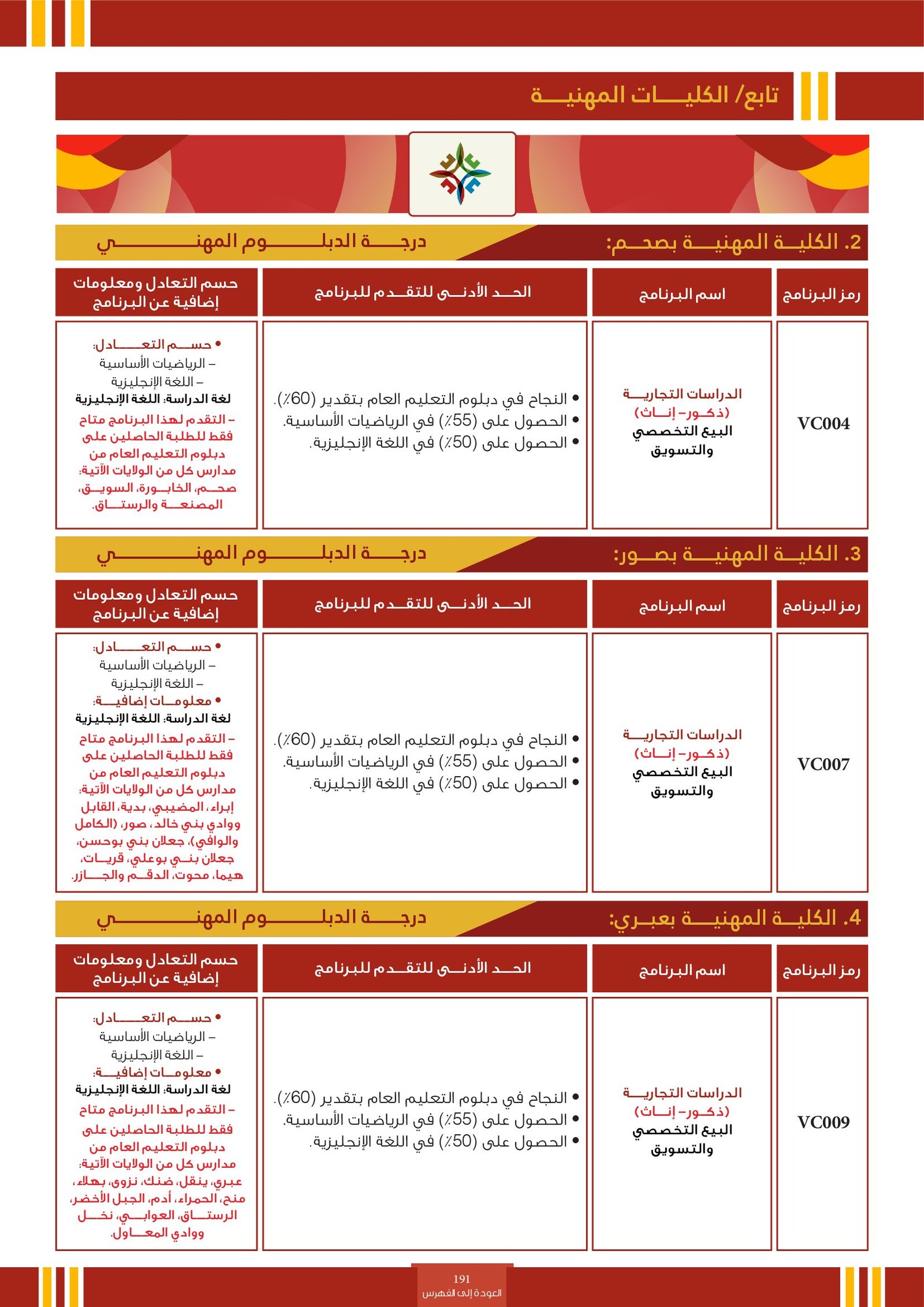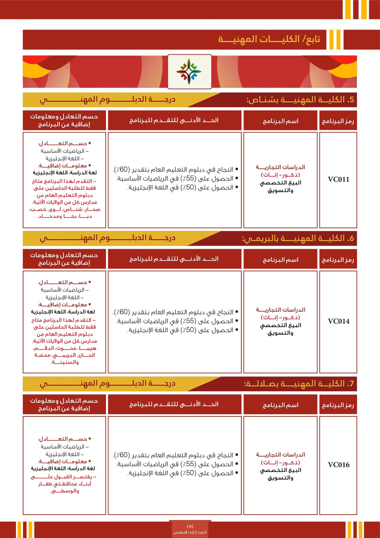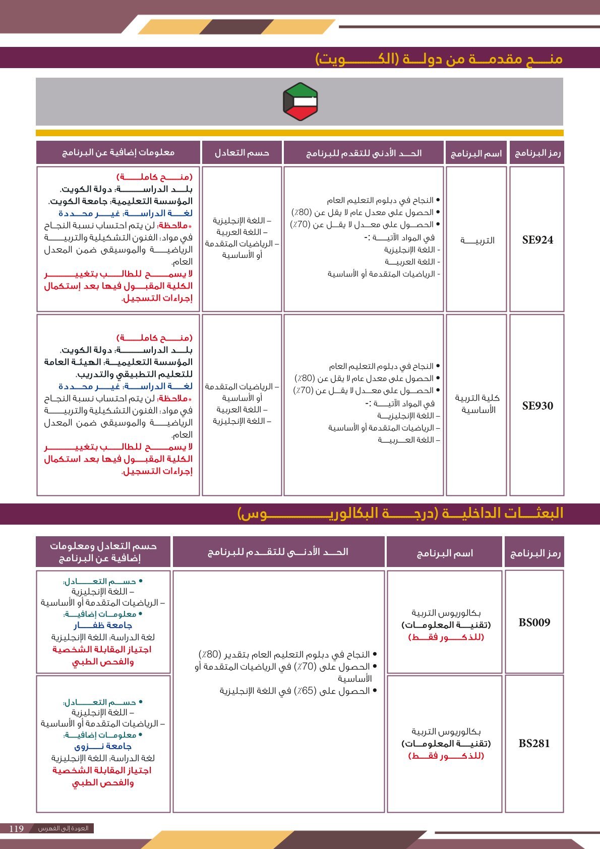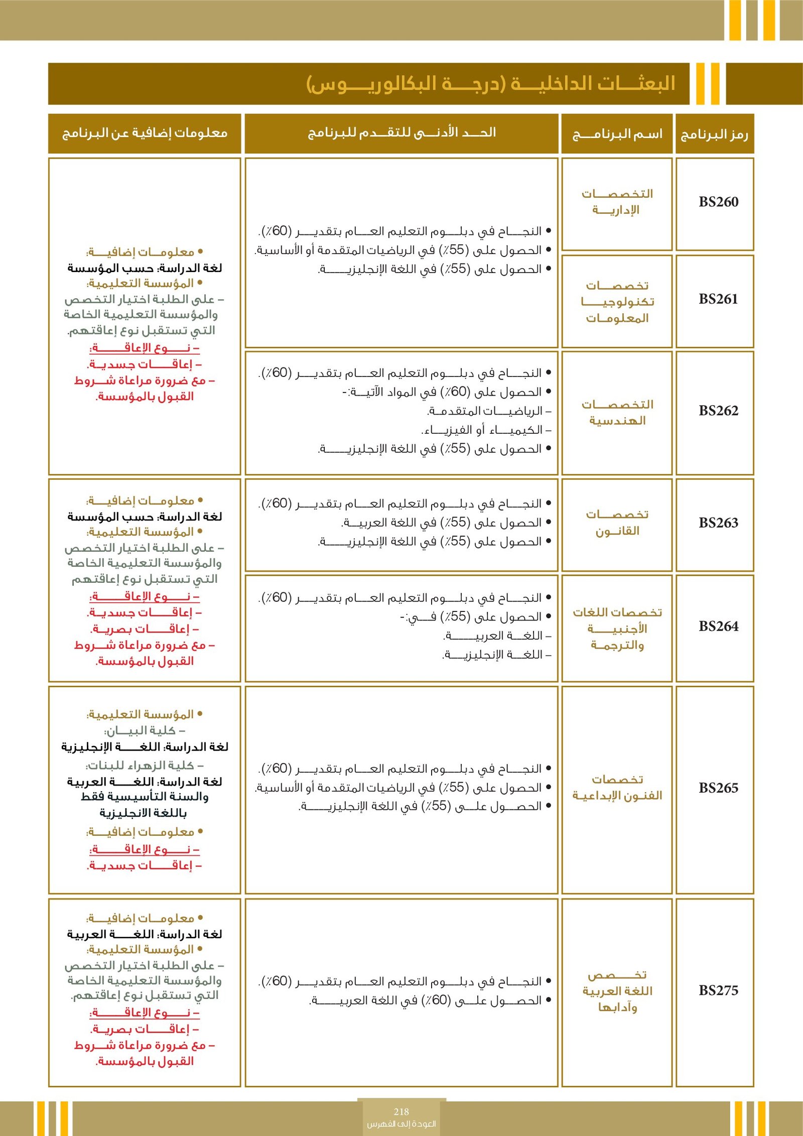 | .... | تخصصات ذوي الاعاقة في كلية العلوم الشرعية | البرامج الحكومية | أخرى | كلية العلوم الشرعية | يرجى الاطلاع على المرجع لمعرفة المزيد من التفاصيل |