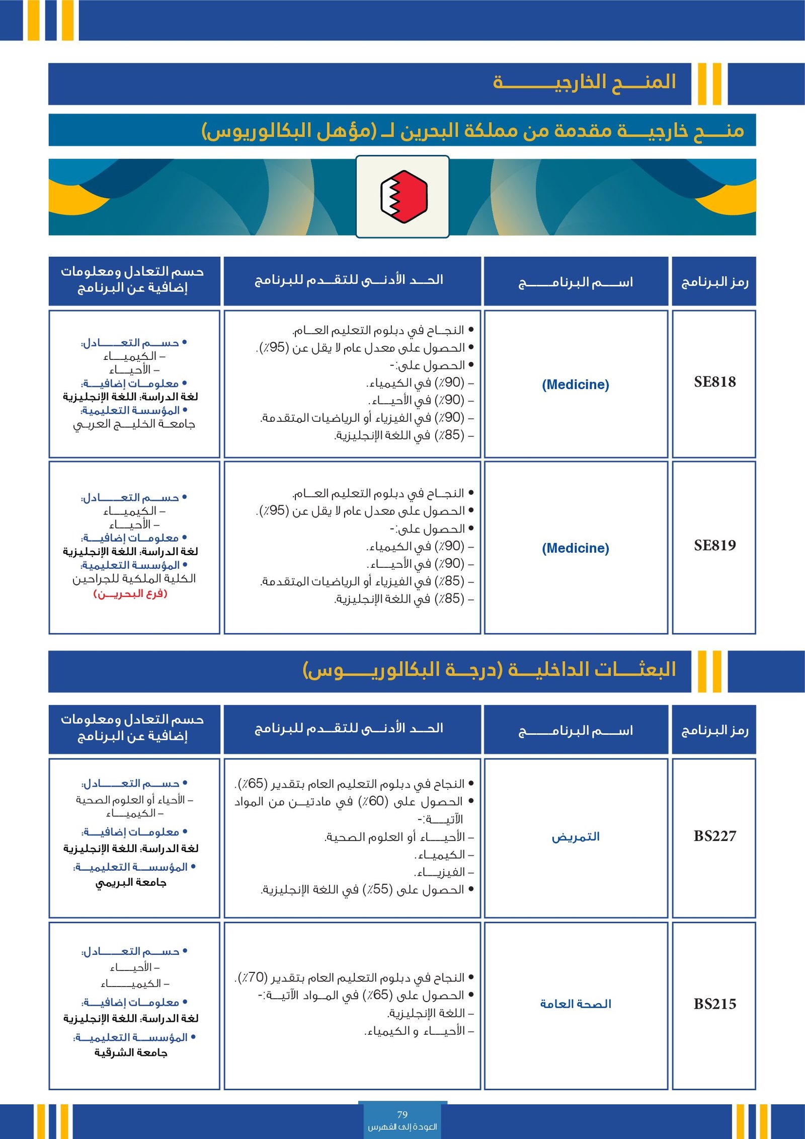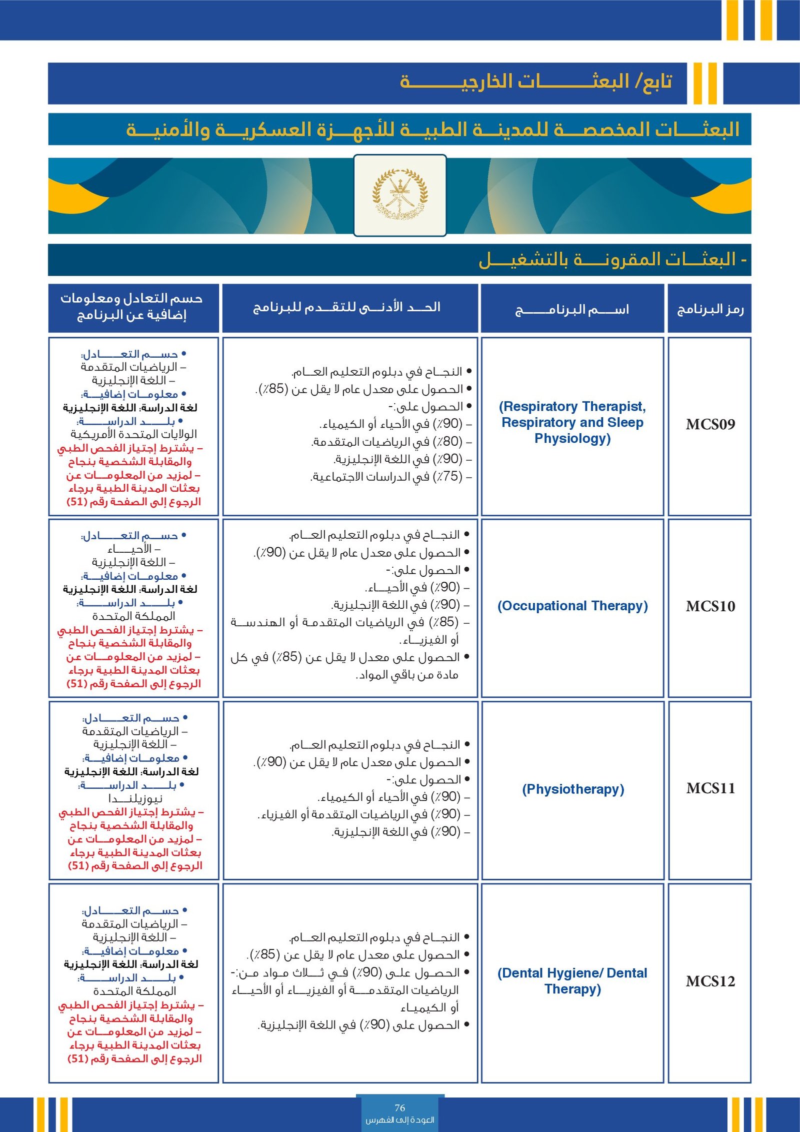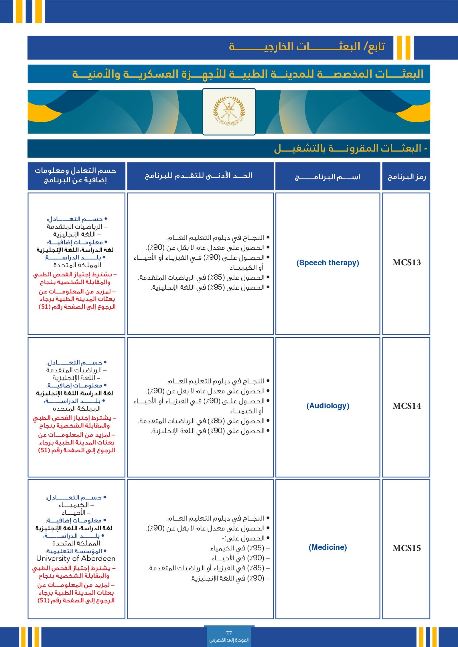 | SE003 | Medicine | البعثات الخارجية | أخرى | التفاصيل بالمرجع | حسم التعادل: