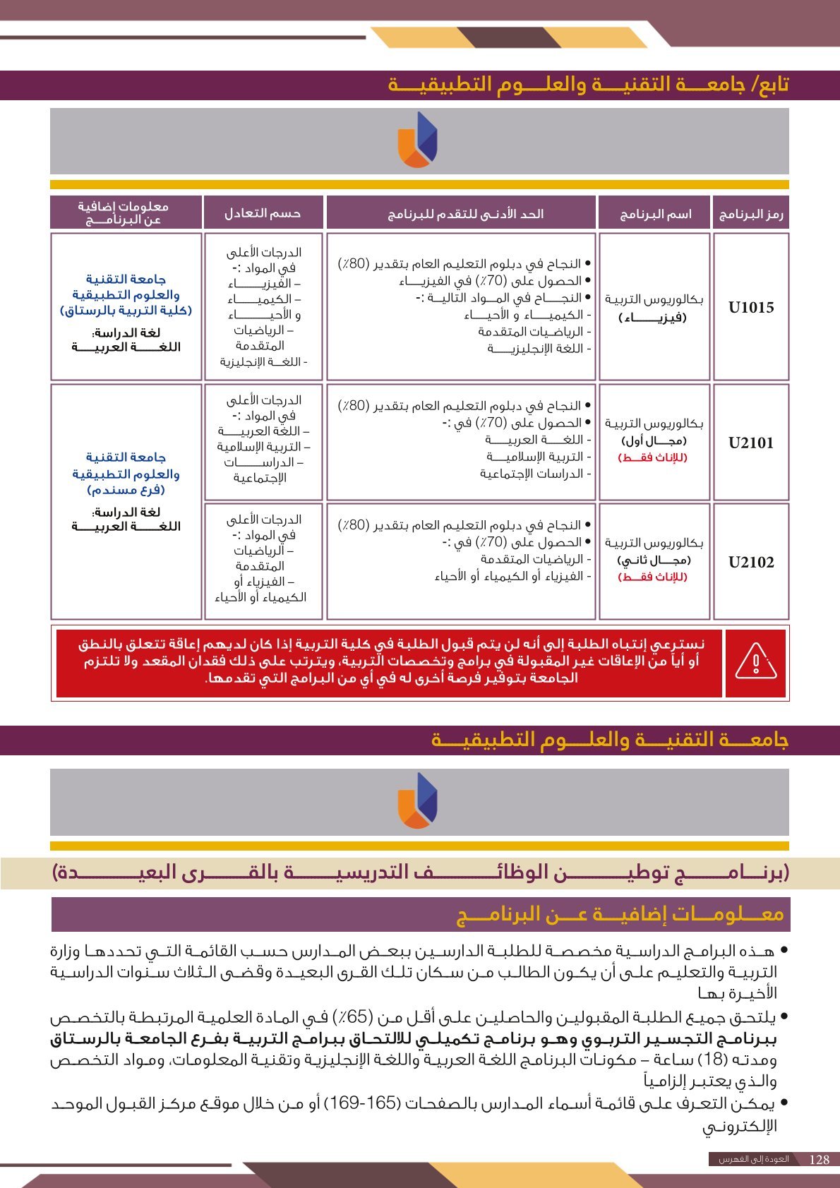 - ضرورة إلتزام الطالب بالبرنامج