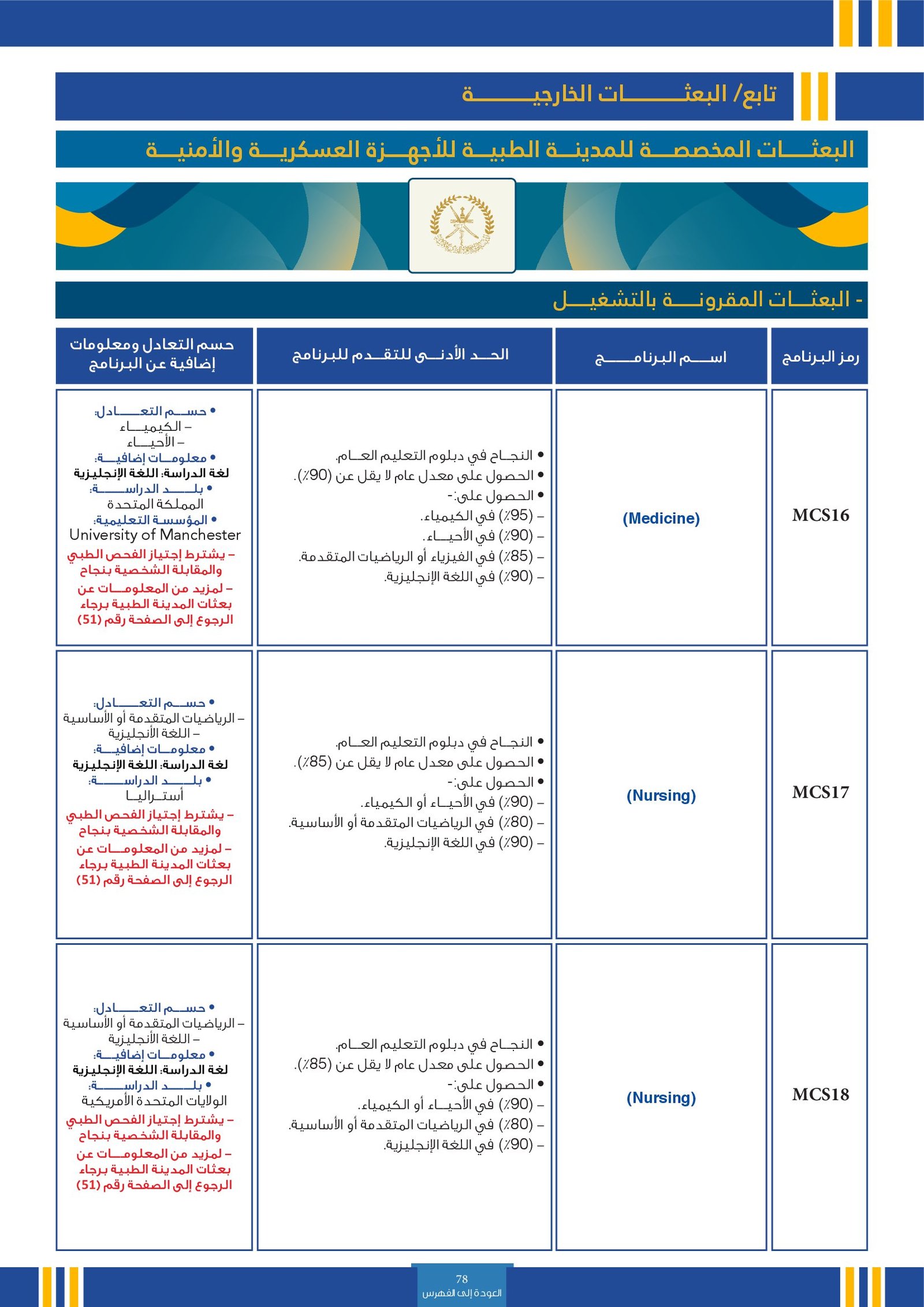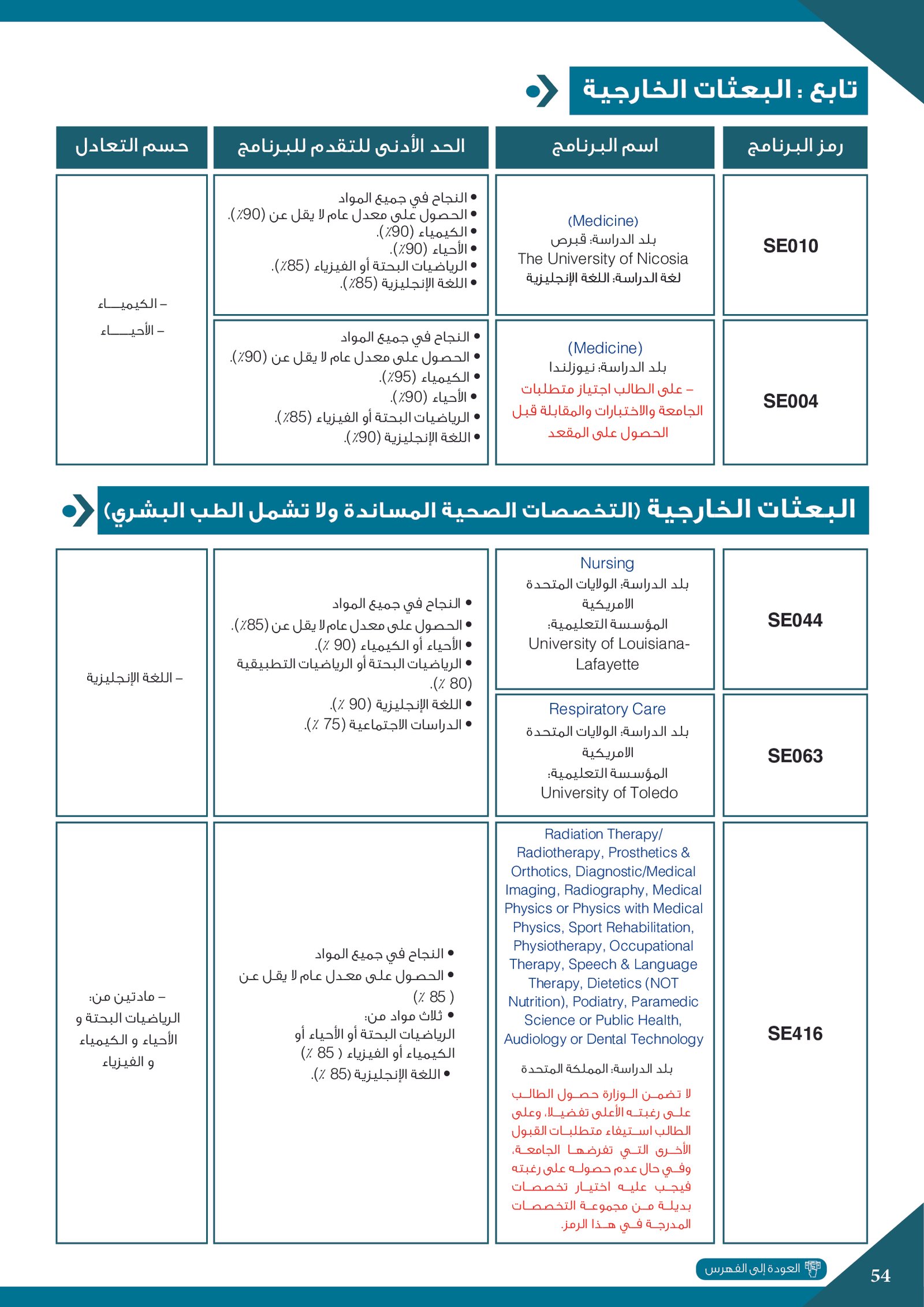 | SE004 | Medicine | البعثات الخارجية | أخرى | التفاصيل بالمرجع | النجاح في دبلوم التعليم العام.