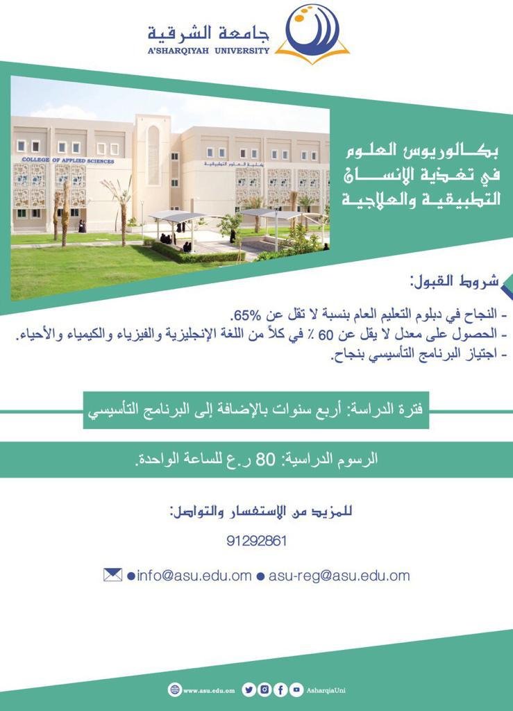 | علوم الغذاء والتغذية | 6 | الإنجليزية | 9000.00 | إنهاء دبلوم التعليم العام