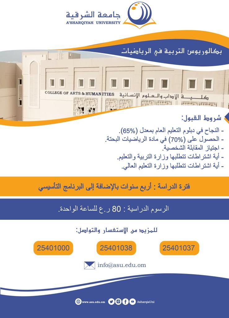 | نطم المعلومات الادارية | 5 | الإنجليزية | 8000.00 | النجاح في دبلوم التعليم العام بنسبة 65% |